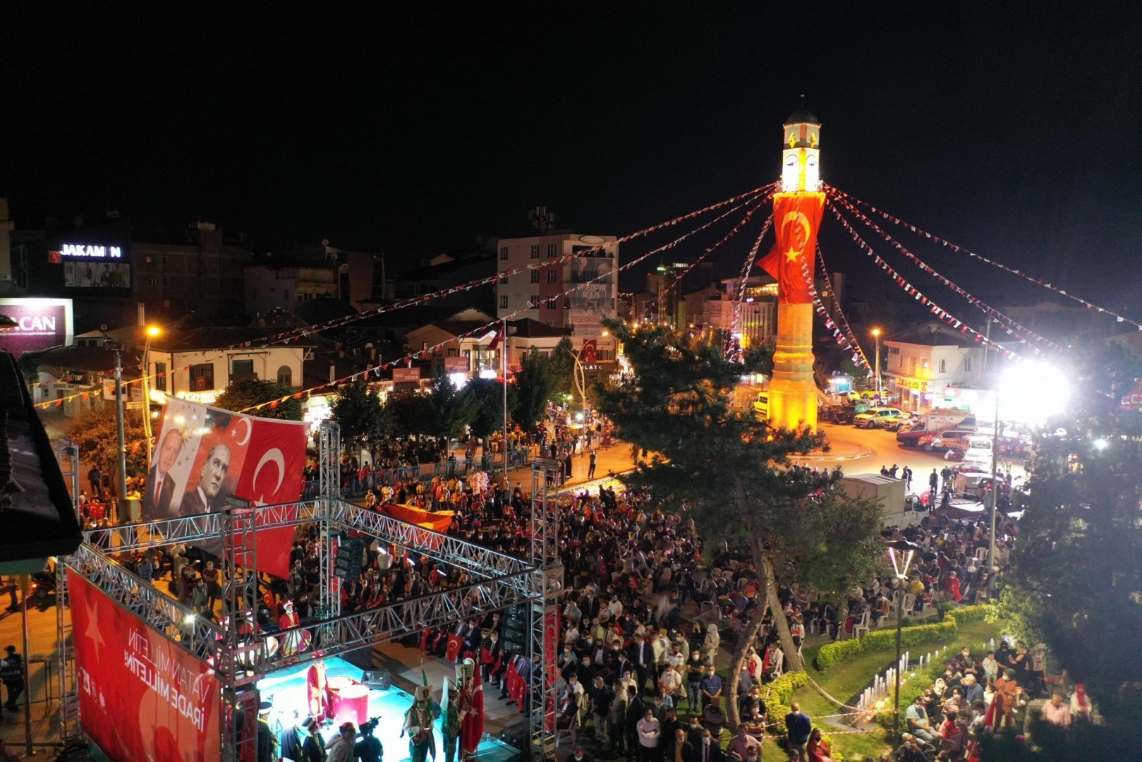 15 Temmuz’u planlayanlarla, Adnan Menderes’i asan zihniyetin aynı zihniyet olduğunu dile getiren AK Parti Çorum Milletvekili ve MKYK üyesi Ahmet Sami Ceylan; “O gece Türk milletinin ne kadar cesur, vatanına, ezanına, bayrağına nasıl sahip çıktığını bütün dünyaya gösterdik. 15 Temmuz’u yapan zihniyet 1950 yılında Adnan Menderes’i asan zihniyet ile aynıdır. İki olayda da talimat aynı yerden geldi. Bu millet Adnan Menderes’e o zaman sahip çıkamamıştı ama 15 Temmuz’da iradesine, vatanına, milletine, Cumhurbaşkanına sahip çıktı. Bu milleti bölmeye, parçalamaya çalışan adres hiç değişmedi. Gezi olayları, 17-25 Aralık yargı darbesi, Mit krizi ve 15 Temmuz birbirinden asla bağımsız olaylar değildi. Her seferinde Türkiye’nin diz çökmesi için operasyon çektiler. En son 15 Temmuz’da denediler. O gece üniformalı hainler milletin parası ile alınan tank, tüfek, uçak, helikopterle millete ateş ettiler. O gece Allah bu millerin kalbinden korkuyu aldı. Bu milletin vatan, ezan, bayrak için canını seve seve vereceğini hala anlamadılar. Bu topraklarda hesaplar hiçbir zaman bitmeyecek ama biz bir ve beraber olursak bizi kimse yıkamaz. 15 Temmuz’dan sonra Cumhur İttifakı ile dimdik ayakta duruyoruz. Biz bu topraklardan bir çakıl taşı bile vermeyiz. Kimse boşa heveslenmesin.” ifadelerini kullandı. Ayasofya’nın 86 yıl sonra yeniden ibadete açılmasını da değerlendiren Ceylan; “Bu dünyaya büyük bir mesajdır. Artık gündemi Türkiye belirliyor. Bu bölgede hesapları olanlar bize göre hareket etmek zorunda.” dedi Vali Mustafa Çiftçi ise 15 Temmuz’un, 251 şehidi ve binlerce gazisiyle milletin, iradesine ve istikbaline sahip çıktığı gecenin adı olduğunu belirterek, “Cumhurbaşkanımızın liderliğinde meydanlara çıkarak darbeye dur demenin adıdır 15 Temmuz. Aslında 15 Temmuz bir darbe girişimi değildi. Normalde darbe girişimleri idareyi değiştirmek için yapılıyor ama burada böyle bir niyet yoktu. Askeri bir ihtilal de değildi. O gün, Türkiye’yi haritadan silme, tamamen yok etme planıydı. Ancak Cumhurbaşkanımız liderliğinde Türk milleti, hain örgüte fırsat vermedi.” diye konuştu. Geceye katılan 15 Temmuz gazileri Mustafa Çağır ile Mustafa Türkyılmaz da ellerinde Türk bayraklarıyla platforma çıkarak, vatandaşları selamladı.