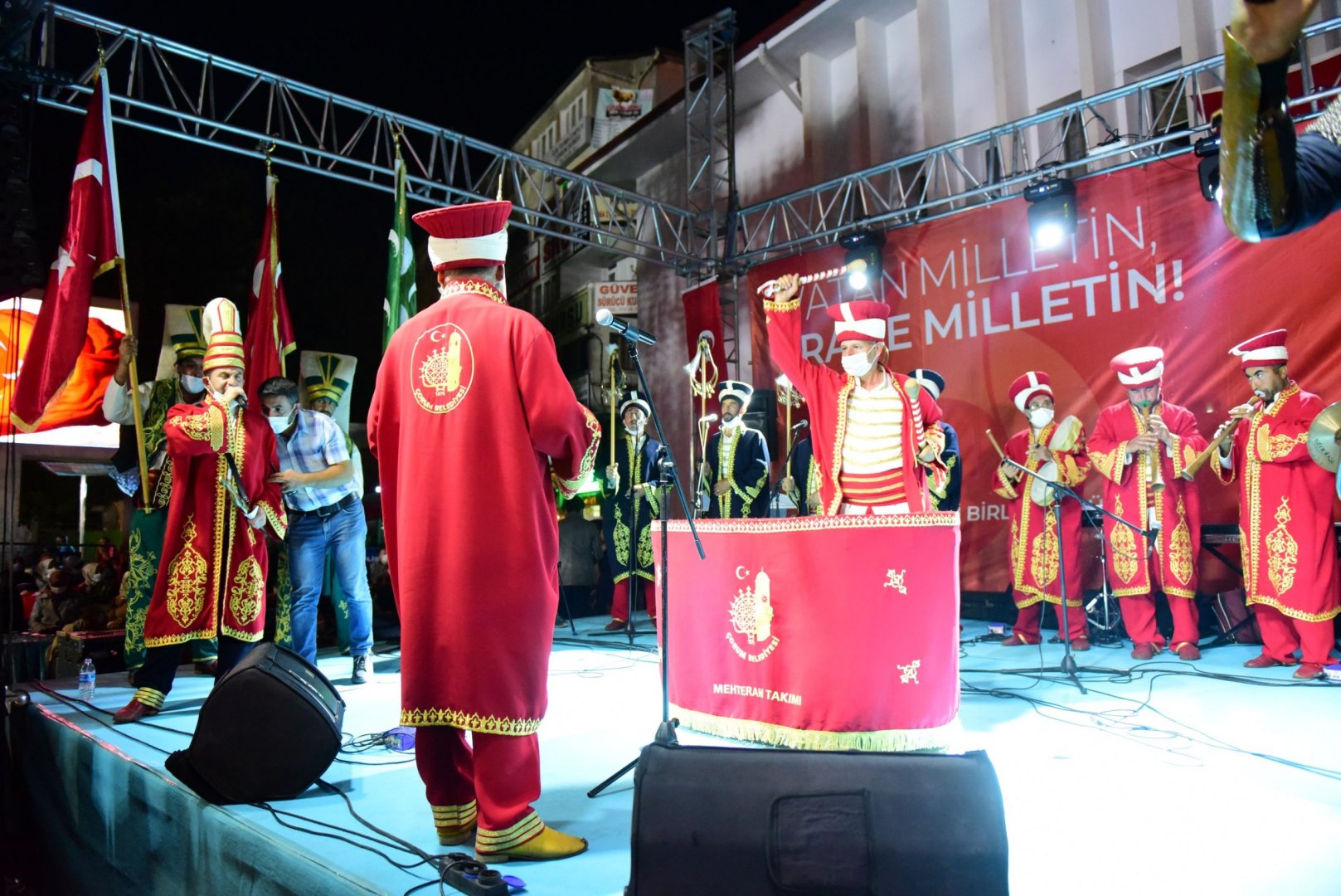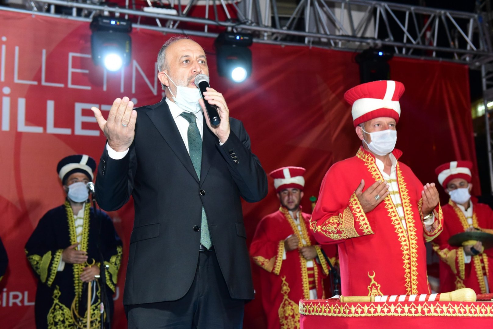 Etkinlikte ayrıca Nurullah Genç şiirleriyle geceye renk katarken, gece saat 00.13’de 81 il ve ilçelerinde aynı anda camilerin minarelerinden okunan selaların ardından sona erdi.