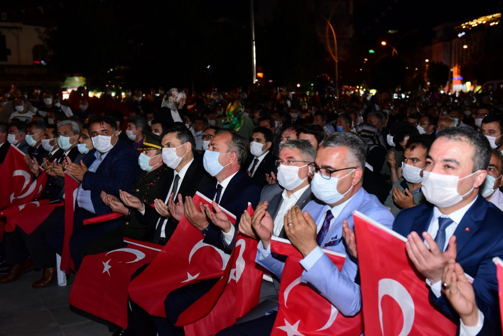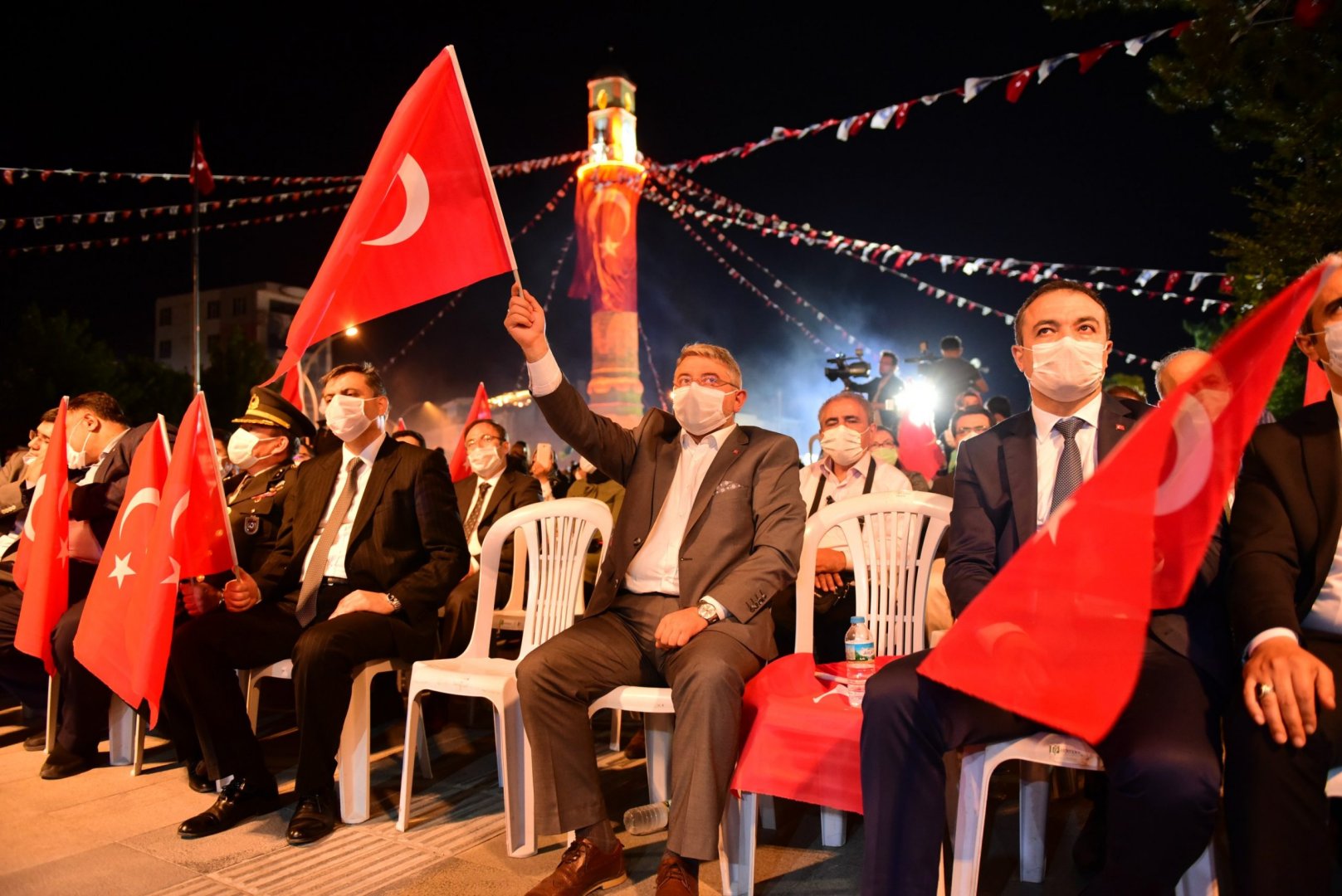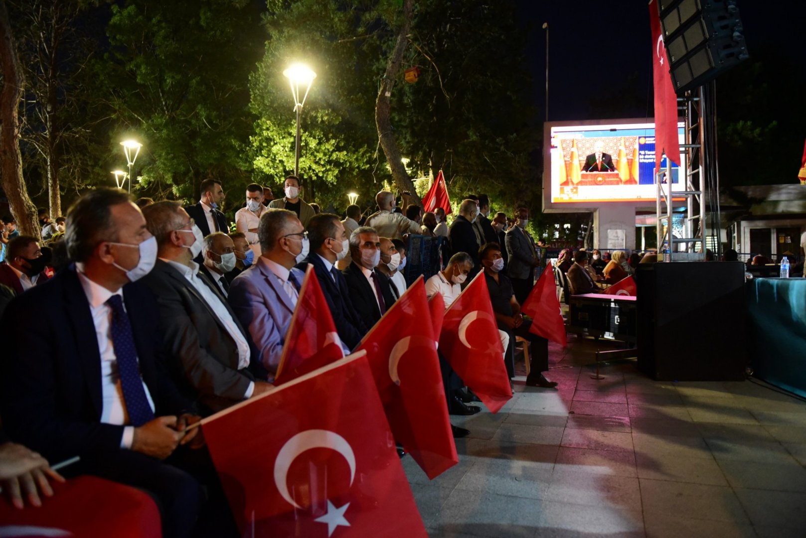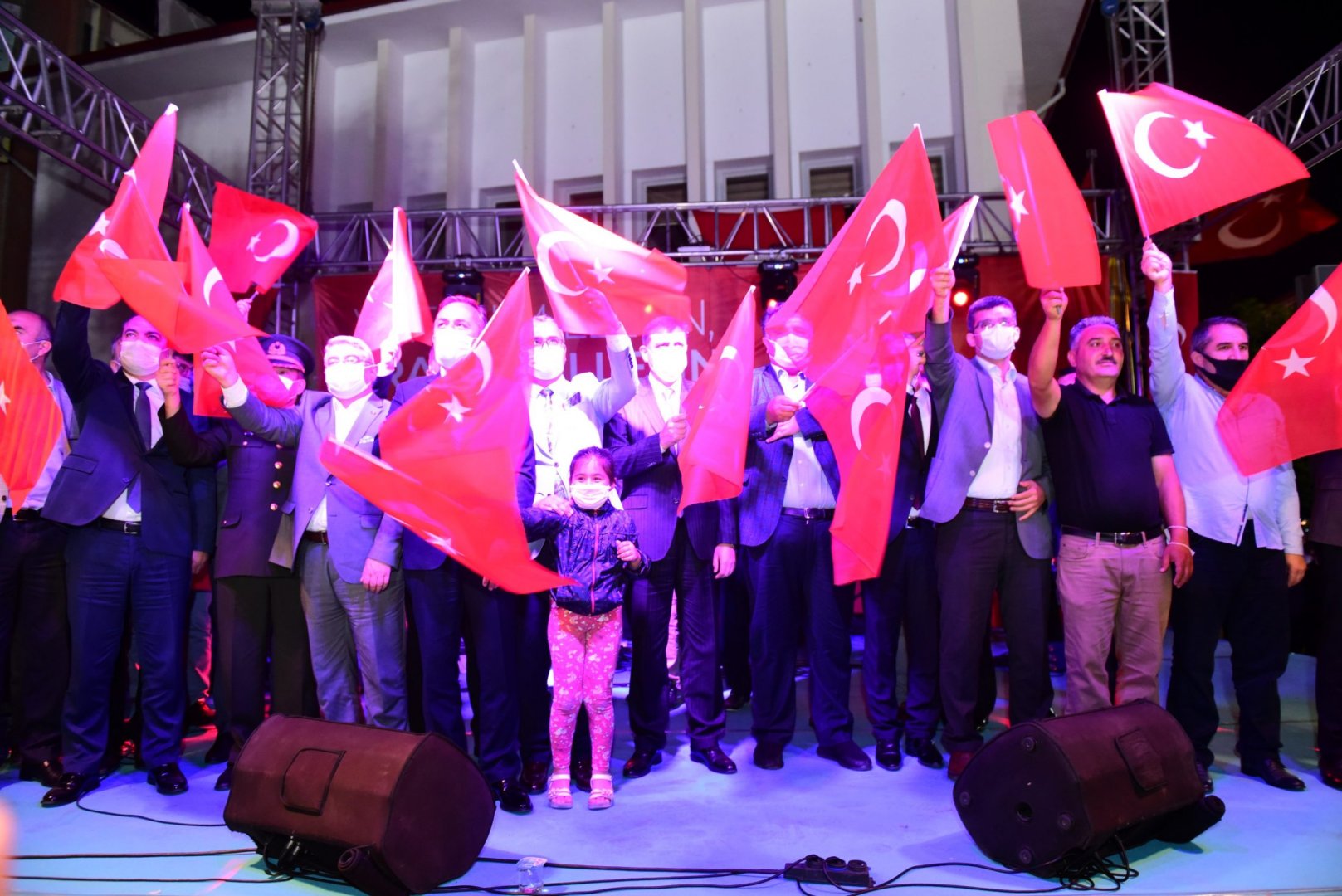15 Temmuz Demokrasi ve Milli Birlik Günü nedeniyle Hürriyet Meydanı’nda düzenlenen etkinlikte hem demokrasi şehitleri anıldı hem de demokrasi zaferi coşkuyla kutlandı. Koronavirüs nedeniyle vatandaşlar etkinlik alanına ateşi ölçtükten sonra alındı.
