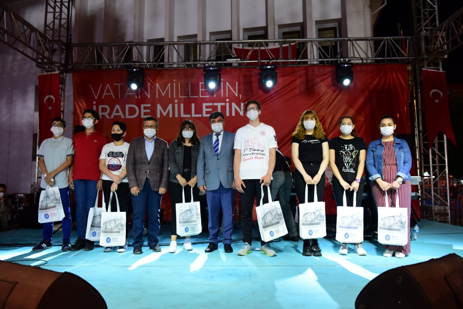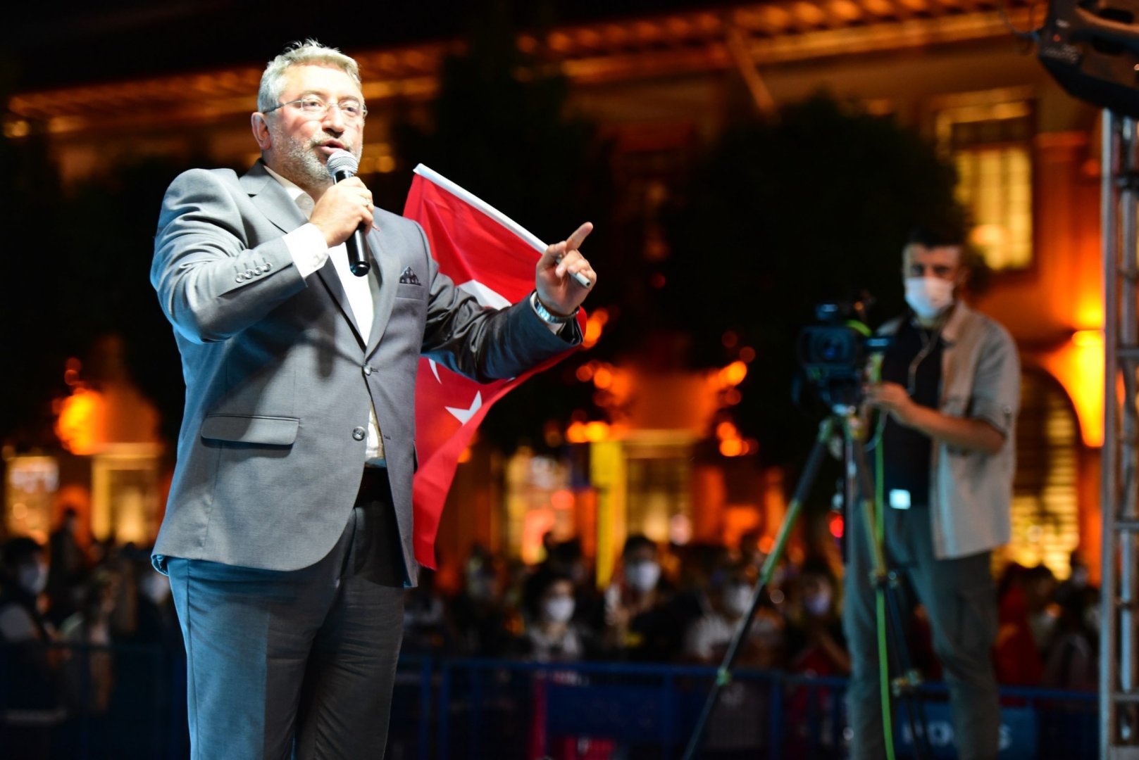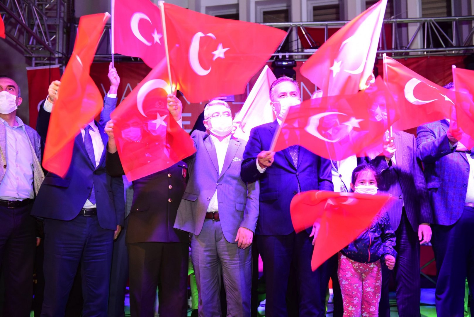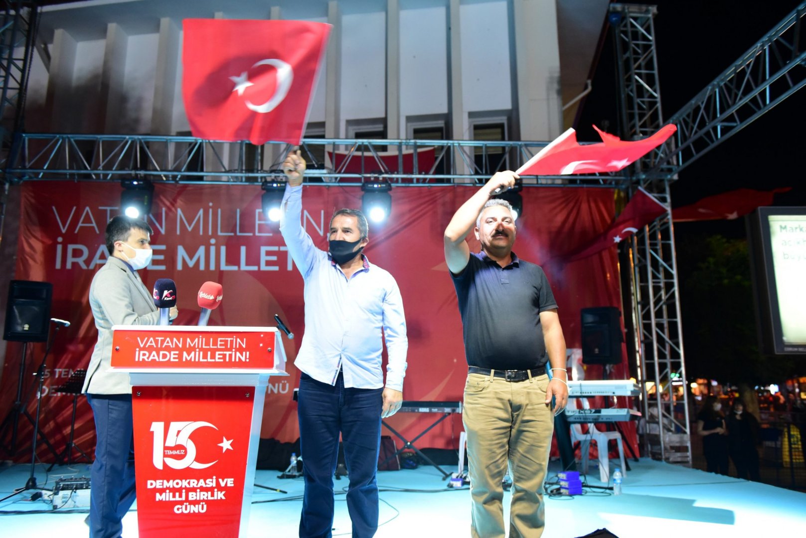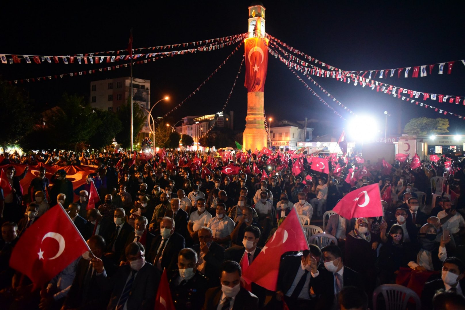 15 Temmuz Demokrasi ve Milli Birlik Günü nedeniyle Hürriyet Meydanı’nda düzenlenen etkinlikte hem demokrasi şehitleri anıldı hem de demokrasi zaferi coşkuyla kutlandı. Koronavirüs nedeniyle vatandaşlar etkinlik alanına ateşi ölçtükten sonra alındı.