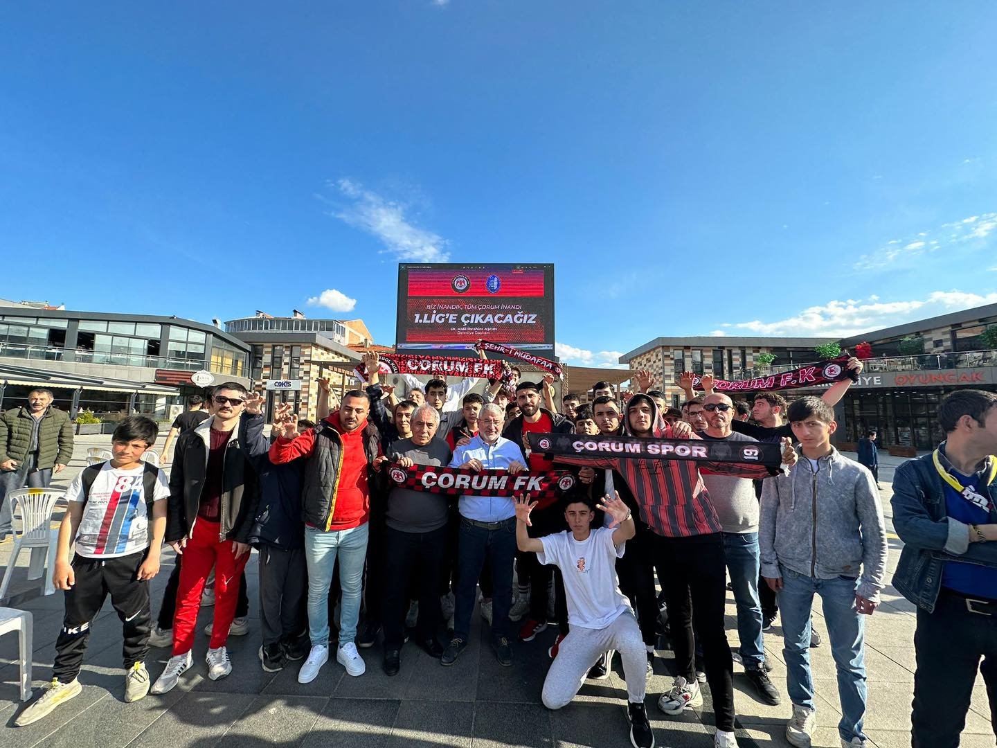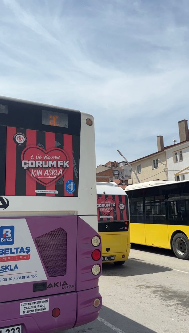 Çorum FK’nın birinci lige yükselmek için verdiği mücadeleyi gündemde tutarak şehrimizin şampiyonluk havasına girmesini amaçlayan Çorum Belediyesi, saat kulesini kımızı siyahlı renklerle donattı. Bunun yanı sıra deplasmanda ve iç saha maçları için taraftara otobüs tahsis eden Çorum Belediyesi, maça gidemeyenler için de şehrimizdeki dev ekrandan maçı canlı olarak taraftara sundu. Çorum FK’nın renklerini taşıyan kırmızı-siyah kaldırım taşları ve Çorum FK bayraklarıyla süslenen halk otobüsleri de şehrimize şampiyonluk havası yaşattı.
