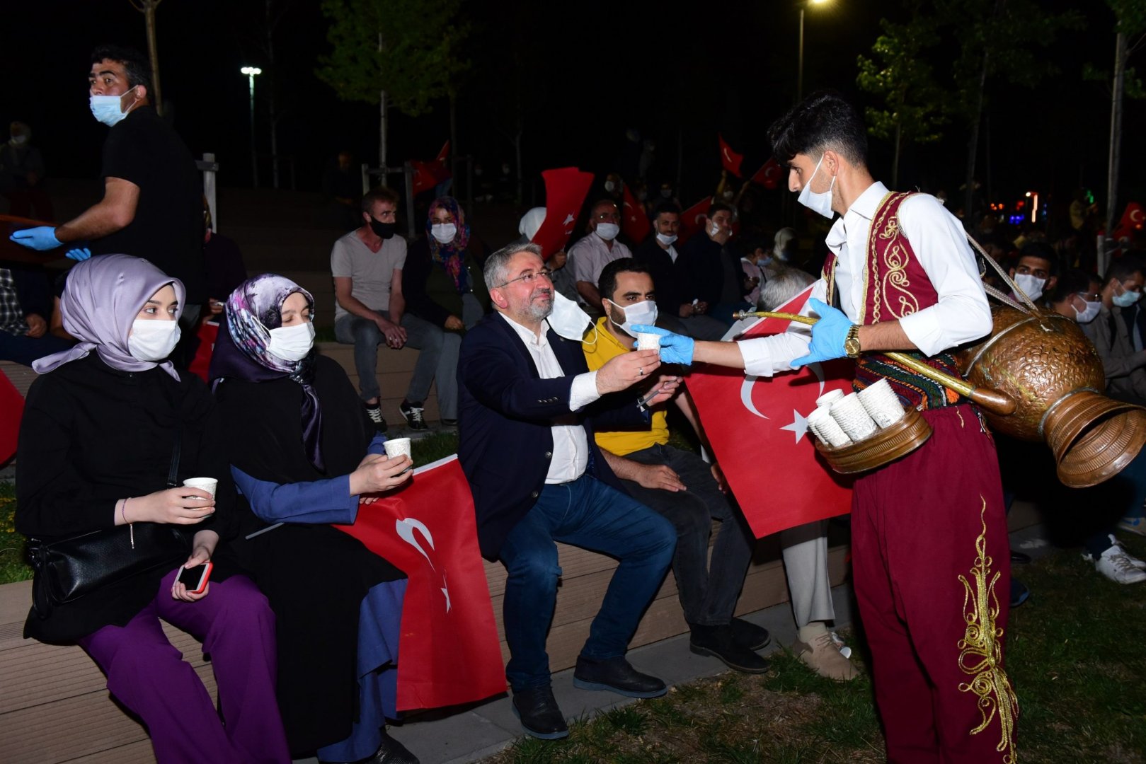 Belediye tararafından Millet Bahçesindeki programı izlemeye gelenlere çeşitli ikramlarda da bulunuldu.