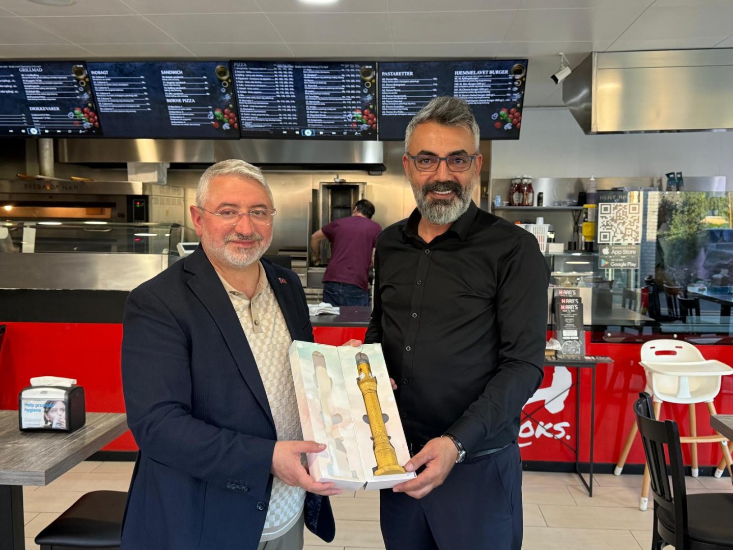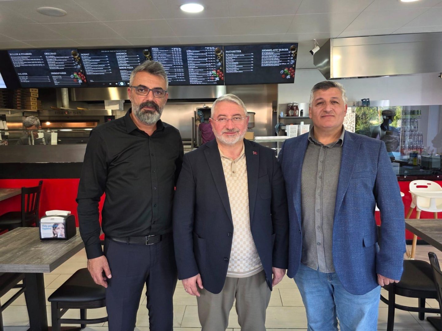 Heyet ayrıca Danimarka MÜSİAD Başkanı Fatih Kaya ve Başkan Yardımcısı Cemil Ata ile bir araya geldi. Görüşme, başkan yardımcılarının işletmeciliğini yaptığı Kaan’s Pizza adlı işletmede gerçekleşti.