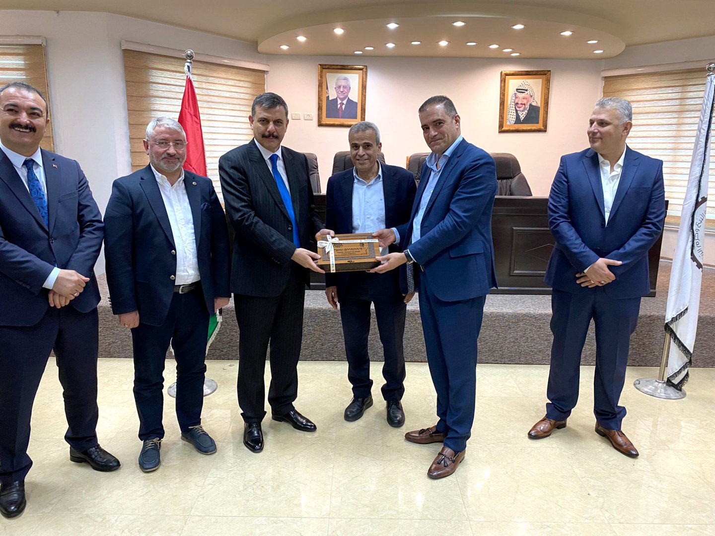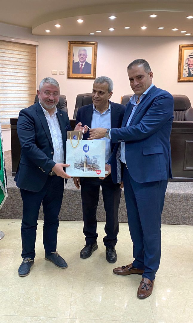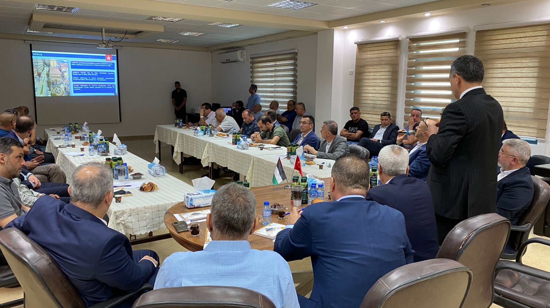 Kalkilya ile Kardeş şehir protokolü imzalamak üzere Filistin’e giden Türk heyeti Kalkilyalı tüccar ve iş insanlarıyla bir araya geldi.
