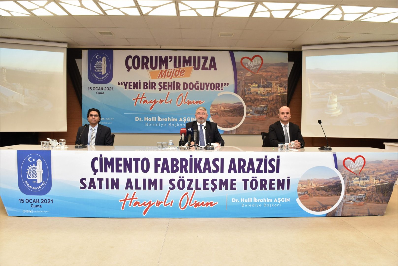 Turgut Özal İş Merkezi Belediyemizin Konferans Salonunda gerçekleştirilen imza törenine Çorum Belediye Başkanı Dr. Halil İbrahim Aşgın, Votorantim Çimento Türkiye CEO’su Hatim Benmoussa, Votorantim Çimento Türkiye Hukuk Müşaviri Alper Erdem, Belediye Başkan Yardımcıları, AK Parti ve MHP’li Meclis üyeleri ile belediyenin birim müdürleri katıldı.