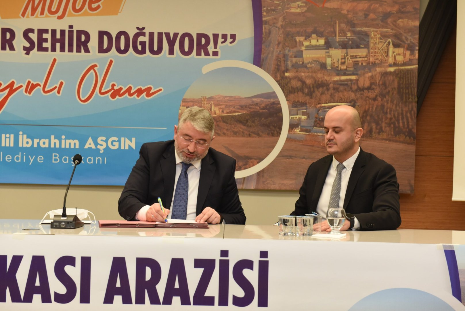 Konuşmaların ardından Çimento Fabrikası arazisini satın alma protokolü Belediye Başkanımız Dr. Halil İbrahim ile Votorantim Çimento Türkiye Hukuk Müşaviri Alper Erdem tarafından imzalandı. İmza töreni toplu anı fotoğrafı çekimi ile sona erdi.