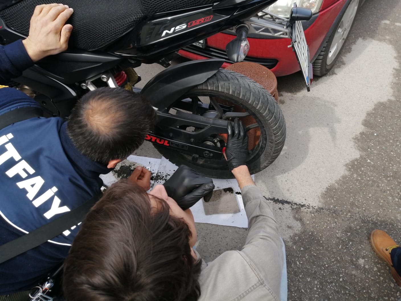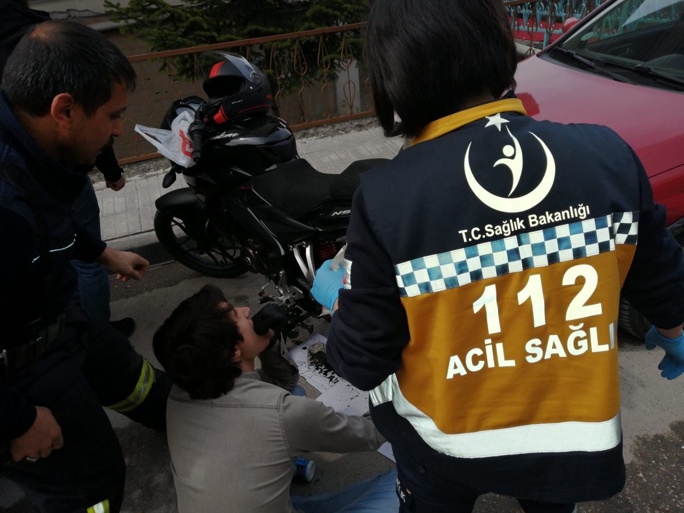 Fatih Caddesi Aksaray Sokak üzerinde motosikletinin bakımlarını yapan bir gencin eli, motosikletin tekerlek aksamına sıkıştı. 112 ekiplerine durumu haber veren vatandaşın yardımına kısa sürede itfaiye ekipleri koştu. İtfaiye ve sağlık ekiplerinin ortaklaşa çalışması sonucu eli sıkıştığı yerden çıkarılan vatandaş, sağlık ekiplerinin yaptığı ilk müdahalenin ardından hastaneye götürüldü.