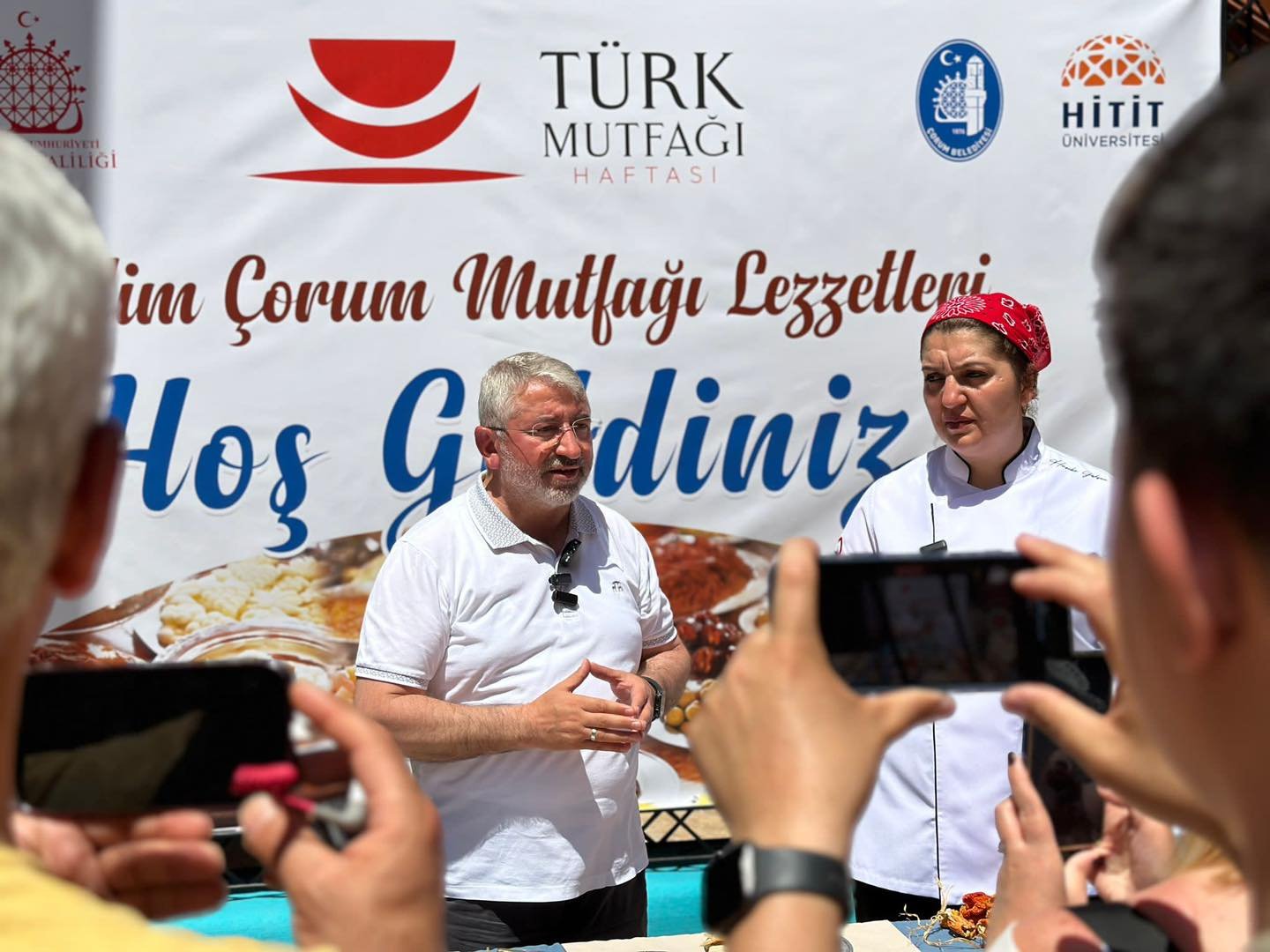 Belediye Başkanı Dr. Halil İbrahim Aşgında etkinliğe katılarak Çorum mutfağının tanıtına yönelik çalışmalardan bahsetti. Çorum’un gastronomiyle ilgili keşfedilmeyi bekleyen gizli bir hazineye sahip olduğunu belirten Başkan Aşgın “Barışın ve kardeşliğin merkezi olan Çorum aynı zamanda gastronominin de merkezidir. Çorumlular çok basit malzemelerden çok leziz yemekler üretebilirler. Yemeği adeta sanata dönüştüren ev hanımlarımızla gurur duyuyoruz.” dedi.