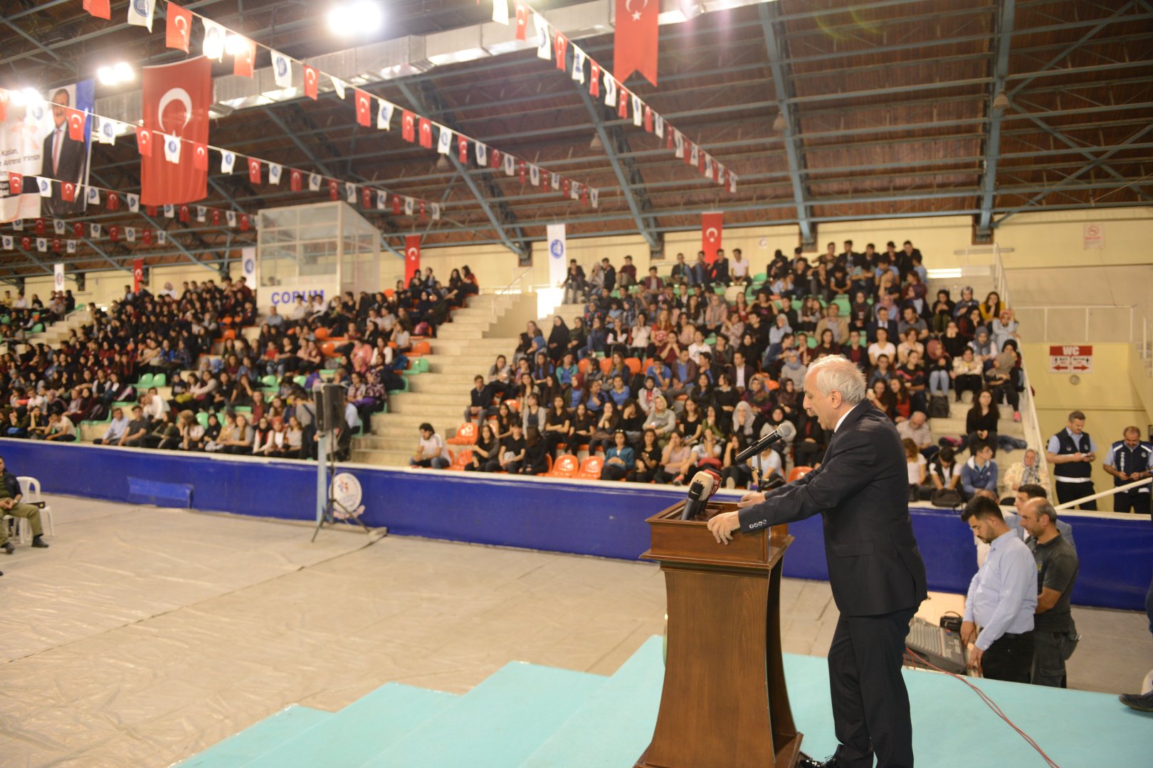 Belediye olarak üzerlerine düşen sorumluluğu yerine getirdiklerini ifade eden Gül; “Elbette bu sadece öğrencilerimize, öğretmenlerimize düşen bir sorumluluk değil. Tek başına bir kesimin kaldıracağı bir sorumluluk da değil. Bu konuda eğitim ve kültürle ilgili olan bütün kurumlar üzerine düşen sorumluluğu yerine getirmeli. Devletimiz bu sorumluluğunun farkında. Her ilimize üniversiteler açıldı. Liseler, ortaokullar açıldı. Okullarımız çağın gerektirdiği tüm imkanlarla donatılıyor. Çorum Belediyesi olarak biz de devletin bu misyonunu sahiplenen, uygulayan bir belediyecilik sergiliyoruz. Eğitim yatırımlarımız en önemli yatırım kalemlerimizden biri oldu. Okullarımıza her türlü yardımı yapıyoruz, yapmaya çalışıyoruz. Türkiye’nin hedeflerini, şehrimizde gerçekleştireceğine inandığımız hizmetlerle gençlerimizin eğitimi için imkânlarımızı seferber diyoruz. Milli Eğitim Müdürlüğümüzle, Okullarımızla, Müftülüğümüzle, eğitim faaliyeti yürüten STK’larımızla her zaman işbirliği içinde olmaya gayret ediyoruz. Kültürel çalışmalarımızla gençlerimize, evlatlarımıza, insanlarımıza eğitimleri, kültürel gelişimleri için imkân sağlamaya devam ediyoruz. Çorum Belediyesi olarak her geçen gün daha da çeşitlenen, niteliği artan eğitim – öğretim faaliyetleriyle, kültürel hizmetlerimizin yelpazesini genişletiyoruz. Kitap dağıtımlarından kütüphanelerin kurulmasına, okullarımızın fiziki imkanlarının iyileştirilmesinden öğrencilerimize yönelik kültür gezilerine kadar çok çeşitli alanlarda kültürel hizmetlerimiz var.” ifadelerini kullandı.
