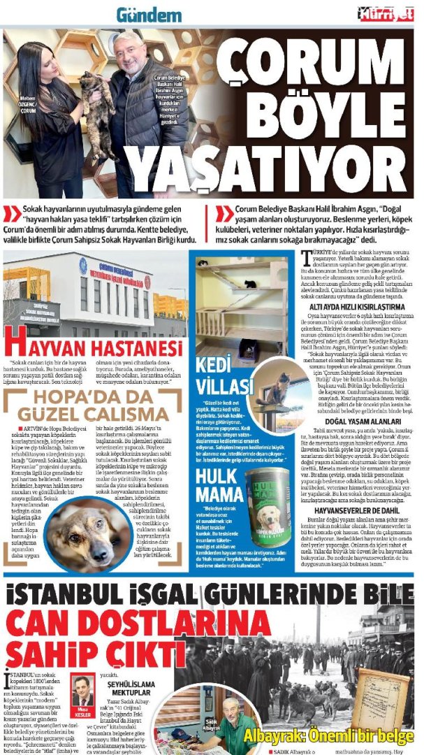 okurlarına aktardı. Sahipsiz Sokak Hayvanları Birliği projesi, Hayvan