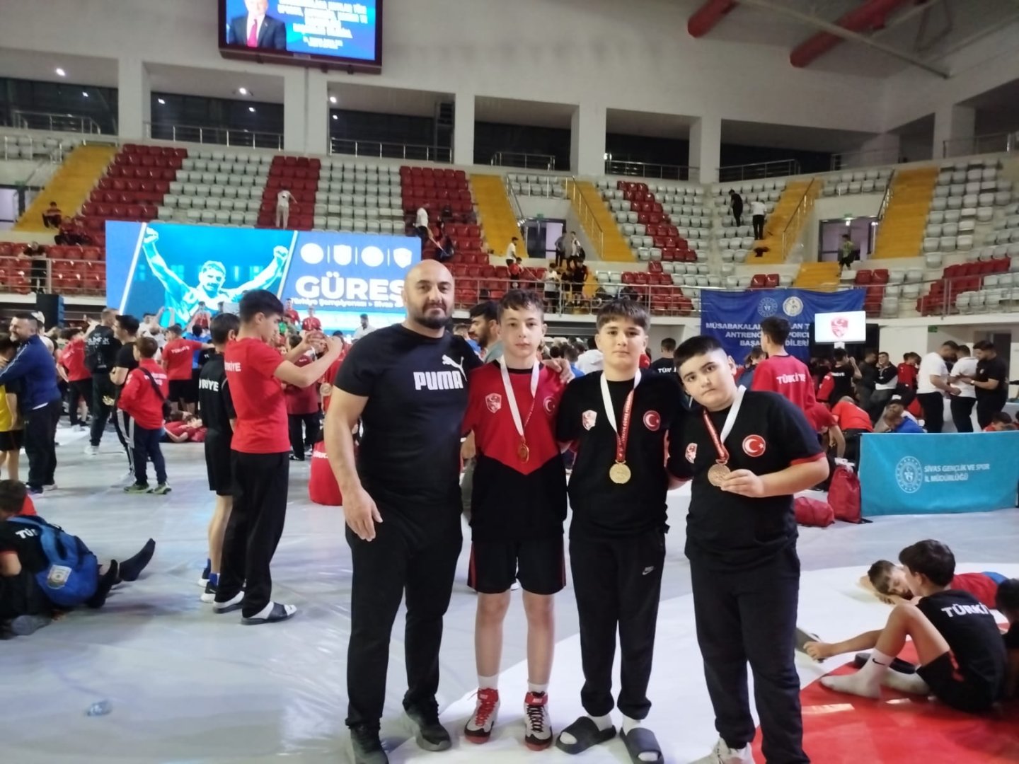 Grekoromen stil 12 yaş 57 kg kategorisinde Alperen Demirkol, Grekoromen stil 13 yaş 57 kg’da Furkan Berk Yılmaz, Serbest stil 12 yaş 48 kg’da ise Berkay Gözübüyük, rakiplerini tek tek mağlup ederek Türkiye Şampiyonu oldu.
