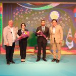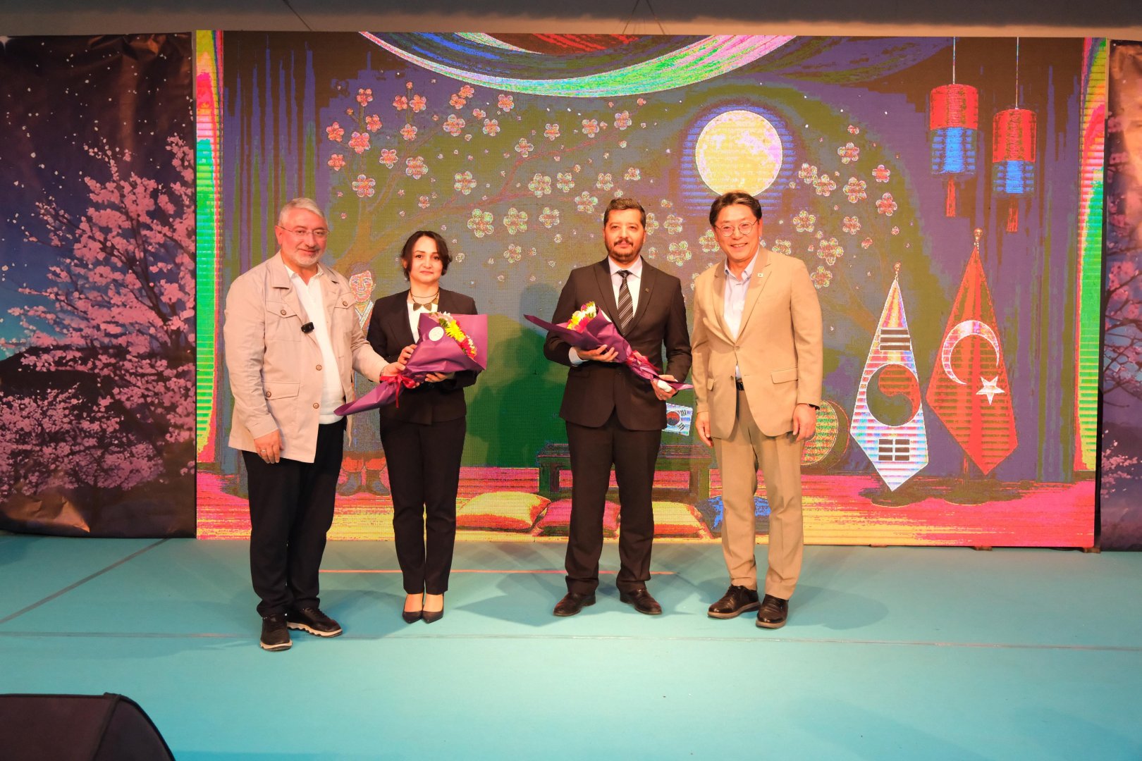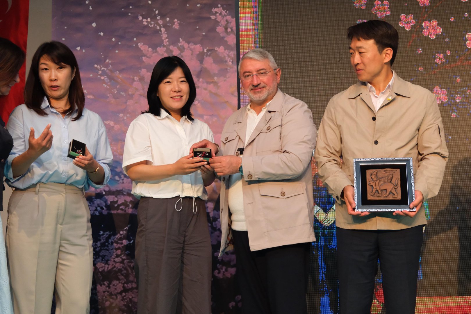 Başkan Aşgın konuşmasının ardından Gimhae Belediye Başkanı Hong Tae-Yong ile birlikte programın hazırlanmasında emeği geçenlere çiçek ve hediye takdim etti. Başkan Aşgın ayrıca Güney Kore’den gelen heyet üyelerine de hediye takdiminde bulundu.