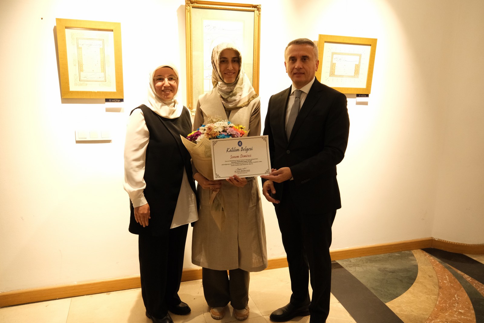 Kur’an-ı Kerim tilavetiyle başlayan program, hat sanatında ustalık ve yetkinliği simgeleyen icazet takdim töreniyle devam etti. Çorumlu hattatlar Mesut Karaca, Muharrem Gökşen, Senem Demirci ile Besim Karabaş adına Kerim Yiğit’e icazetleri, hat sanatının önde gelen akademisyenleri tarafından verildi.
