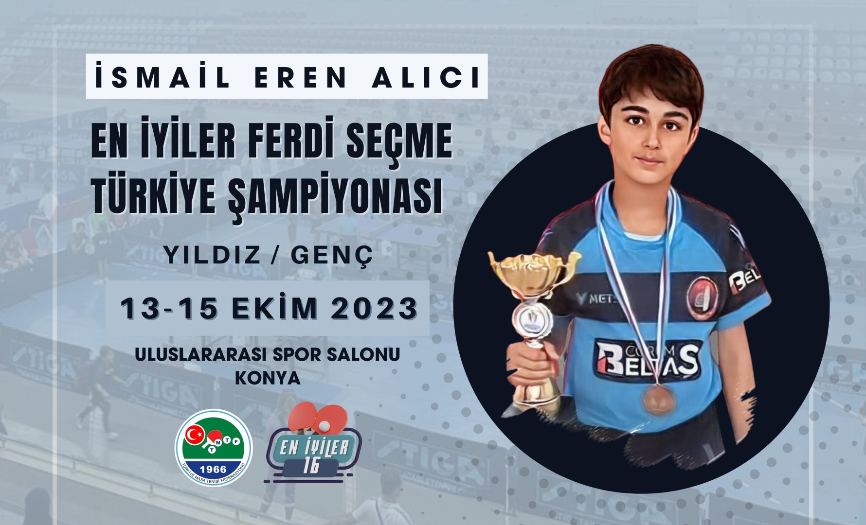 En İyiler Yıldız-Genç Masa Tenisi Türkiye Şampiyonası Konya’da başladı.  Şampiyonaya Çorum Belediyesi Spor Kulübü Masa Tenisi sporcusu İsmail Eren Alıcı’nın ismi verildi.