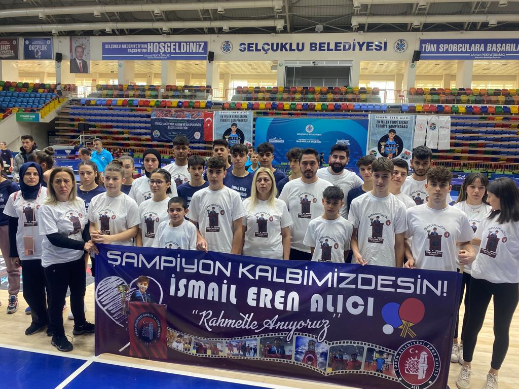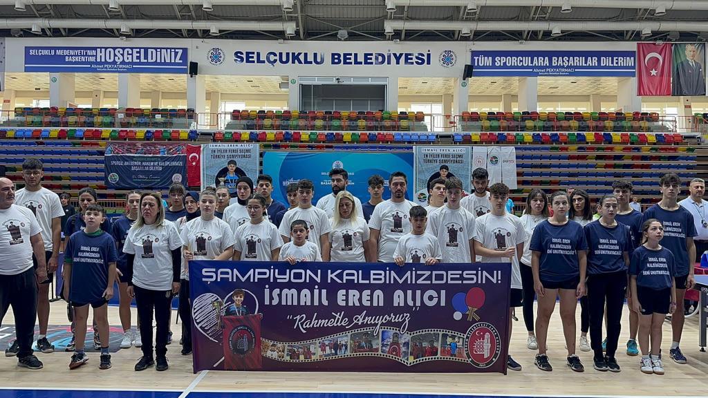 Konya’da 13-15 Ekim 2023 tarihleri arasında gerçekleşecek olan İsmail Eren Alıcı En İyiler Ferdi Seçme Türkiye Şampiyonası (Yıldız-Genç) müsabakalarının açılışı yapıldı.  Müsabaka öncesinde İsmail Eren Alıcı adına anma töreni gerçekleştirildi. Saygı duruşu ve istiklal marşının okunmasının ardından Türkiye Masa Tenisi Federasyonu tarafından İsmail Eren’in annesi Nilgün Alıcı’ya plaket takdim edildi. Öte yandan İsmail Eren adına basılan tişörtleri giyerek törene katılan arkadaşları ve antrenörler salonda duygusal anlar yaşattılar.