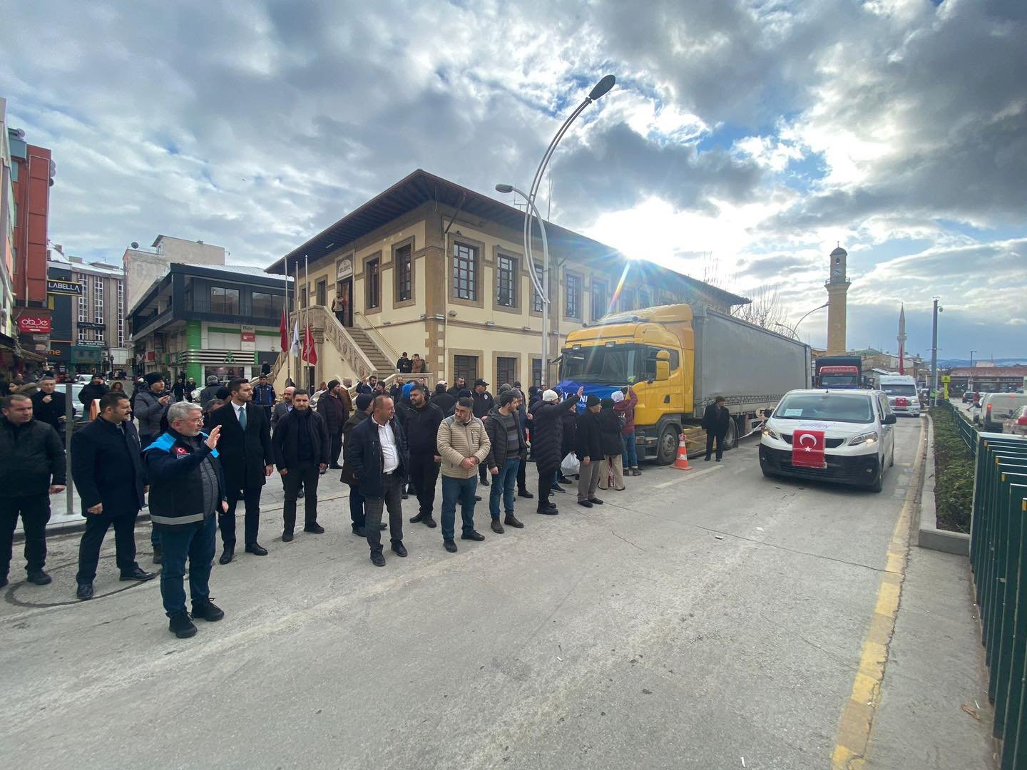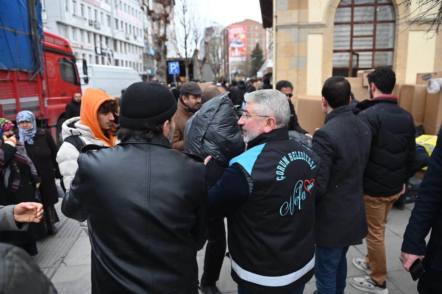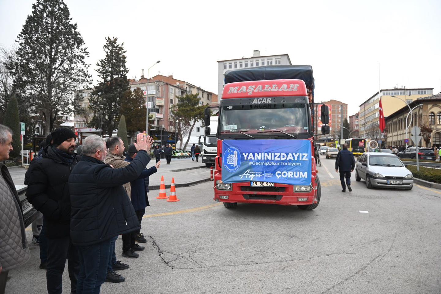Çorum Belediyesi’nin başlattığı yardım kampanyası çığ gibi büyüyerek devam ediyor. Çorumluların omuz omuza yüklediği tırlar dolusu yardım malzemesi deprem bölgesine uğurlanıyor. Şehrimizden yola çıkan yardım tırları deprem bölgesine ulaşıyor.