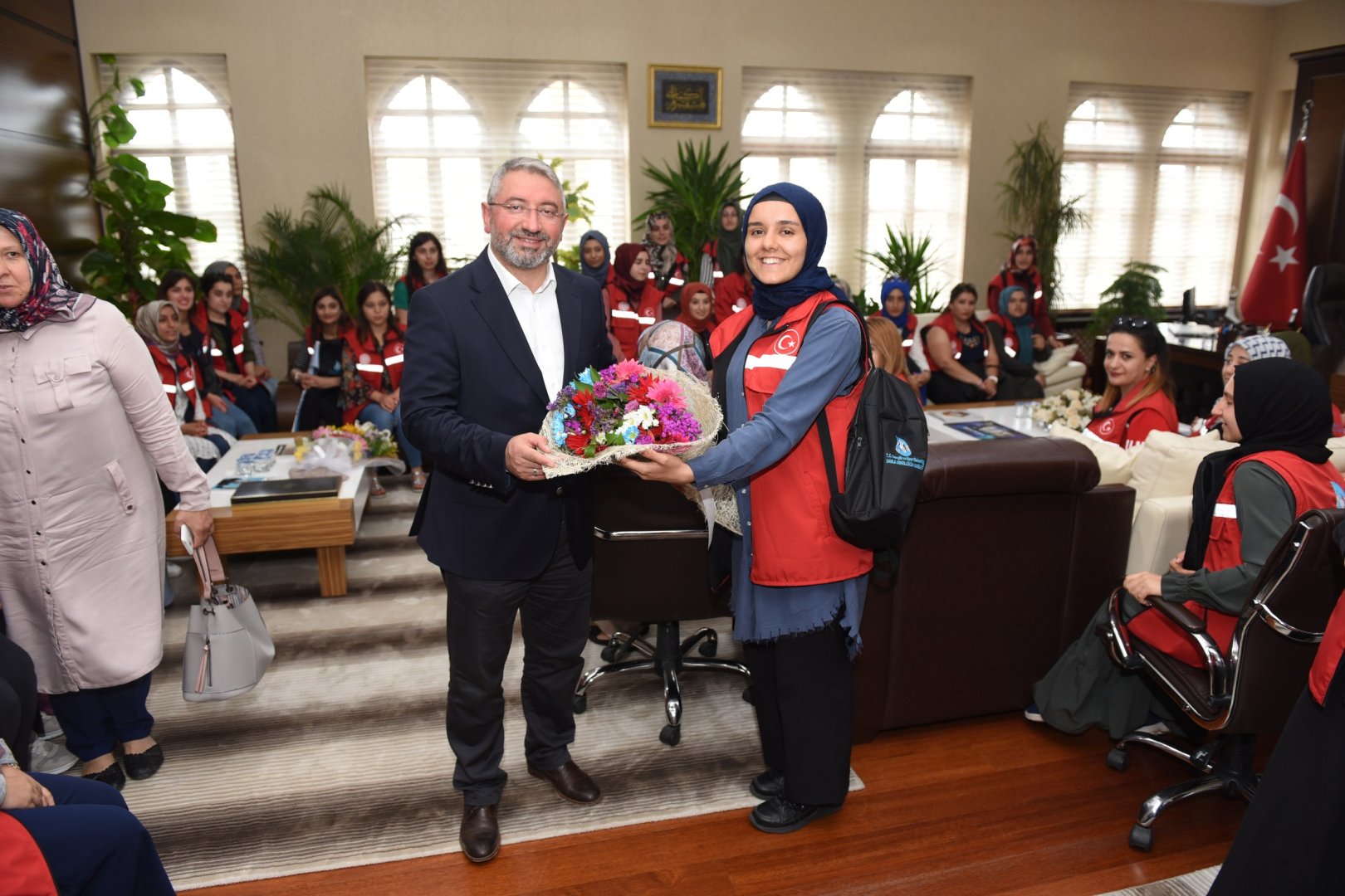 Gençlik ve Spor Bakanlığı Damla Gönüllülük Hareketi kapsamında 45 ilden gelen iyilik elçileri Belediye Başkanı Aşgın’ı makamında ziyaret etti.