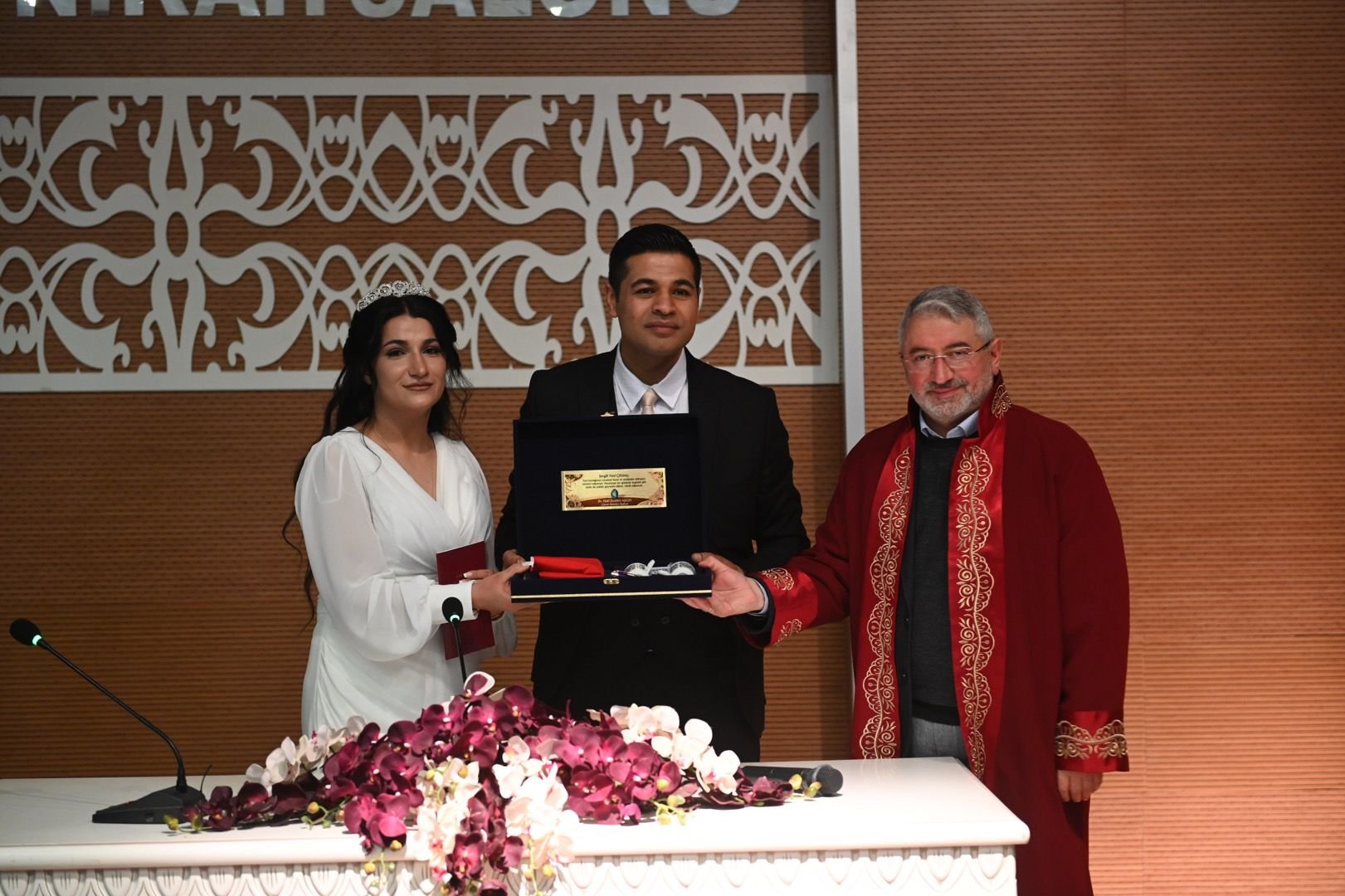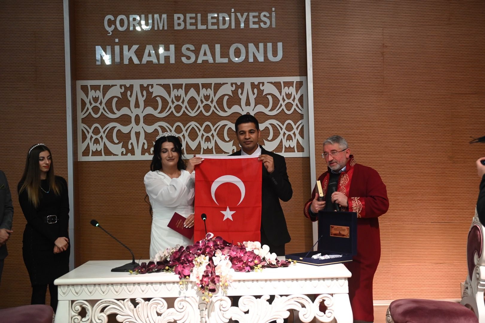 Kahramanmaraş’ta yıkıma neden olan iki büyük depremin ardından Çorum’a gelen Adıyamanlı Seher Kuşcu ve Erzurumlu Emre Çimen, Çorum’da dünyaevine girdi. Genç çiftin nikâhını Belediye Başkanı Dr. Halil İbrahim Aşgın kıydı.
