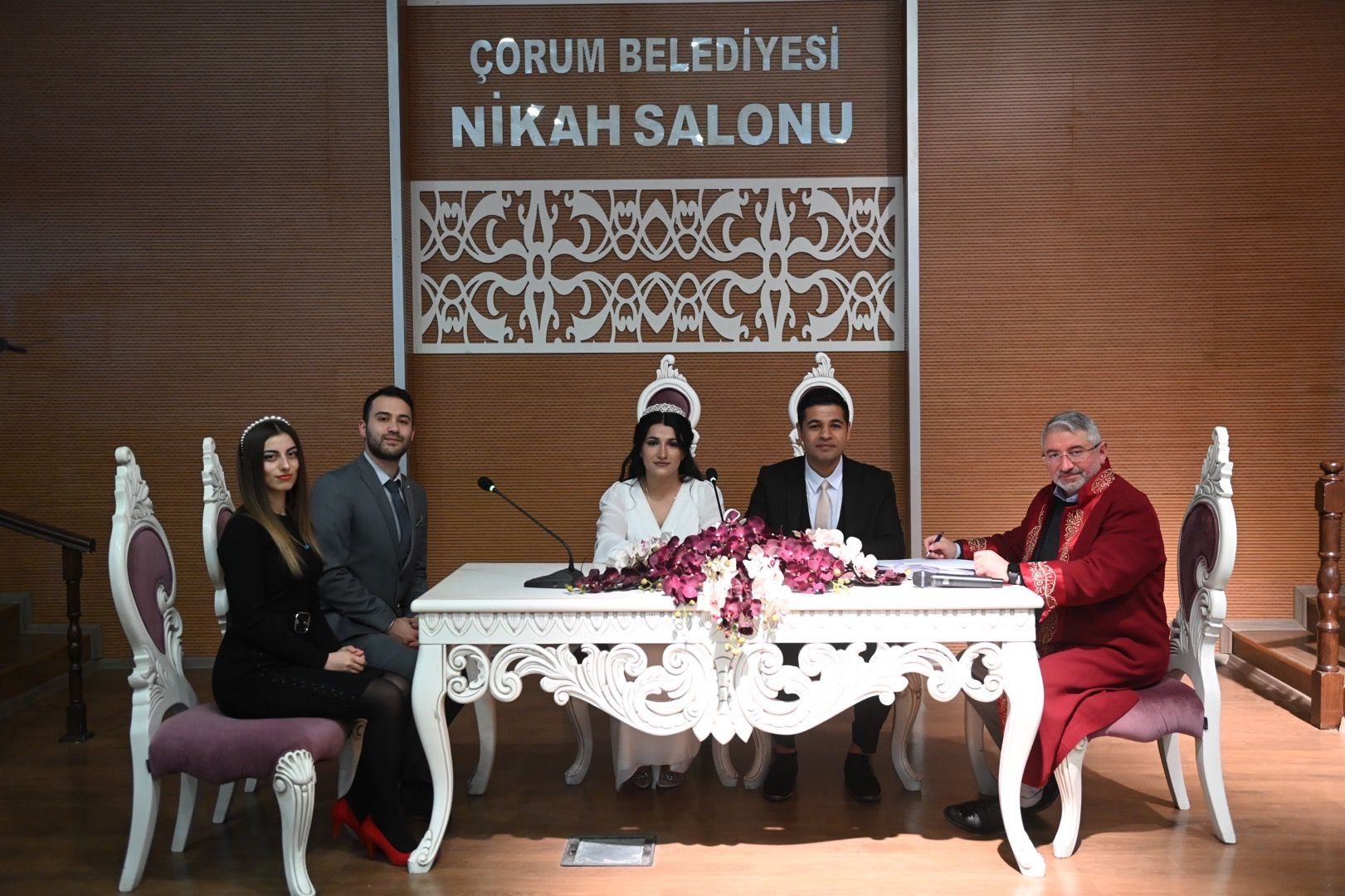 Kahramanmaraş merkezli depremlerin ardından 25 yaşındaki Adıyamanlı Seher Kuşcu ailesiyle birlikte Çorum’a geldi. Seher Kuşcu, Çorum’da yaşayan 29 yaşındaki Erzurumlu nişanlısı Emre Çimen’in evine misafir oldu. Evlilik kararı alan genç çift Çorum Belediyesi’ne nikâh başvurusunda bulundu. Başvurunun olumlu sonuçlanmasının ardından çiftin nikâhı Belediye Başkanı Dr. Halil İbrahim Aşgın tarafından kıyıldı.