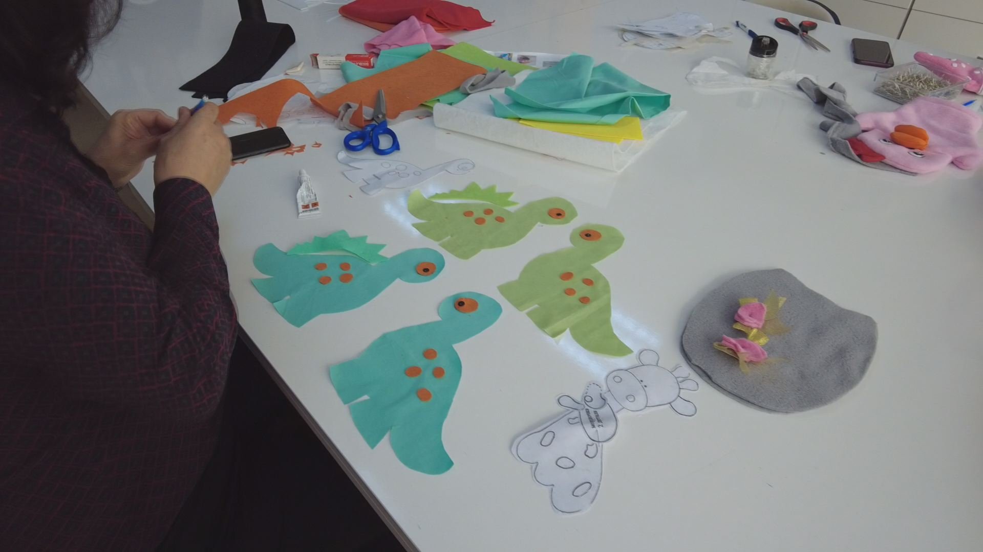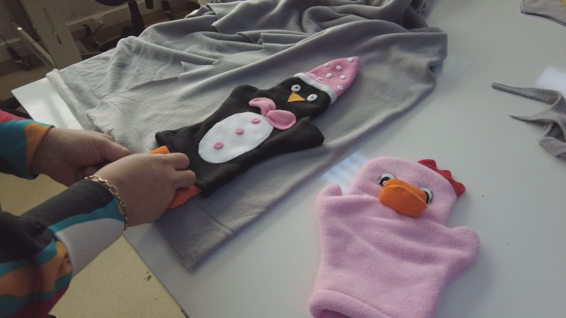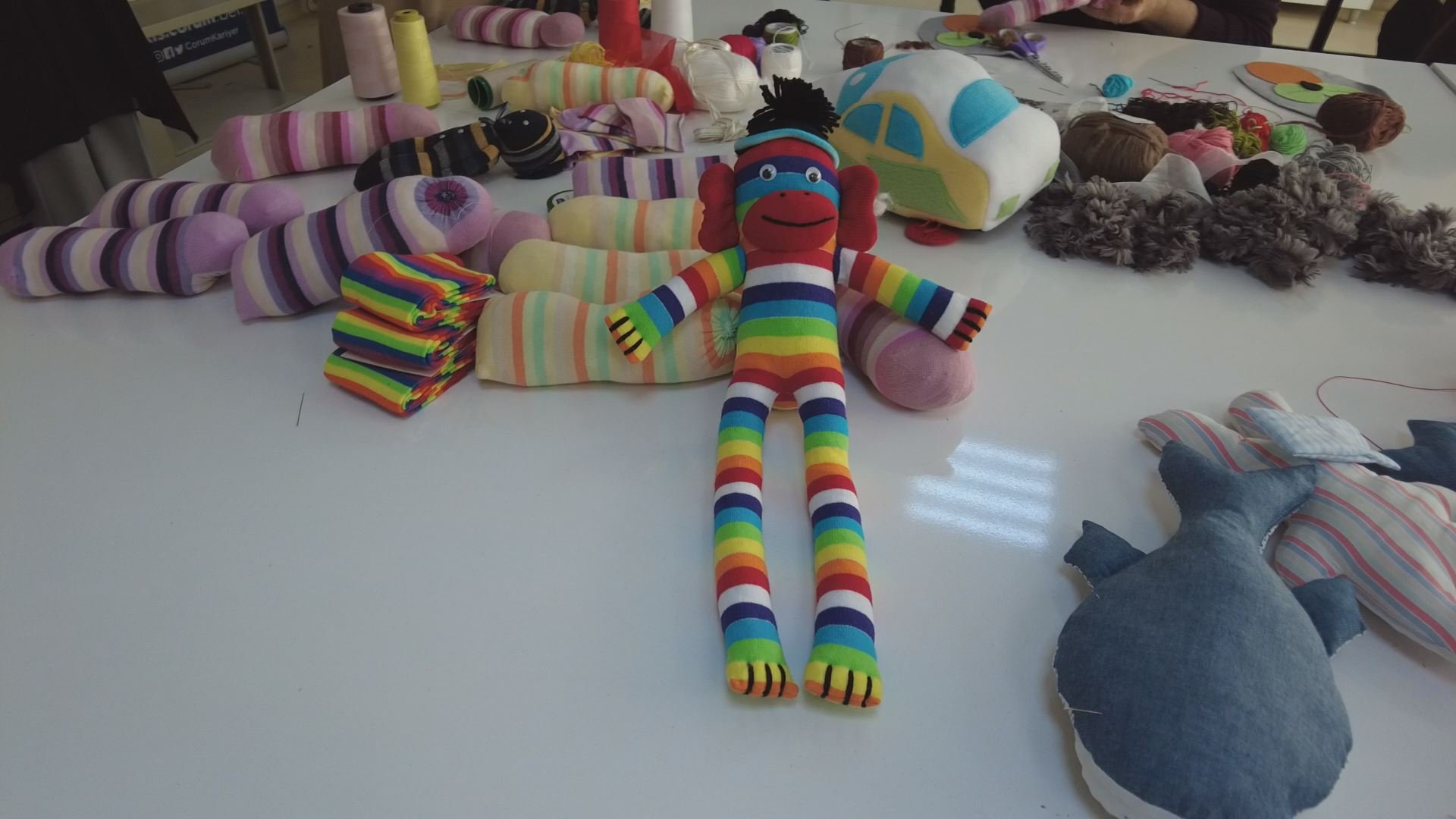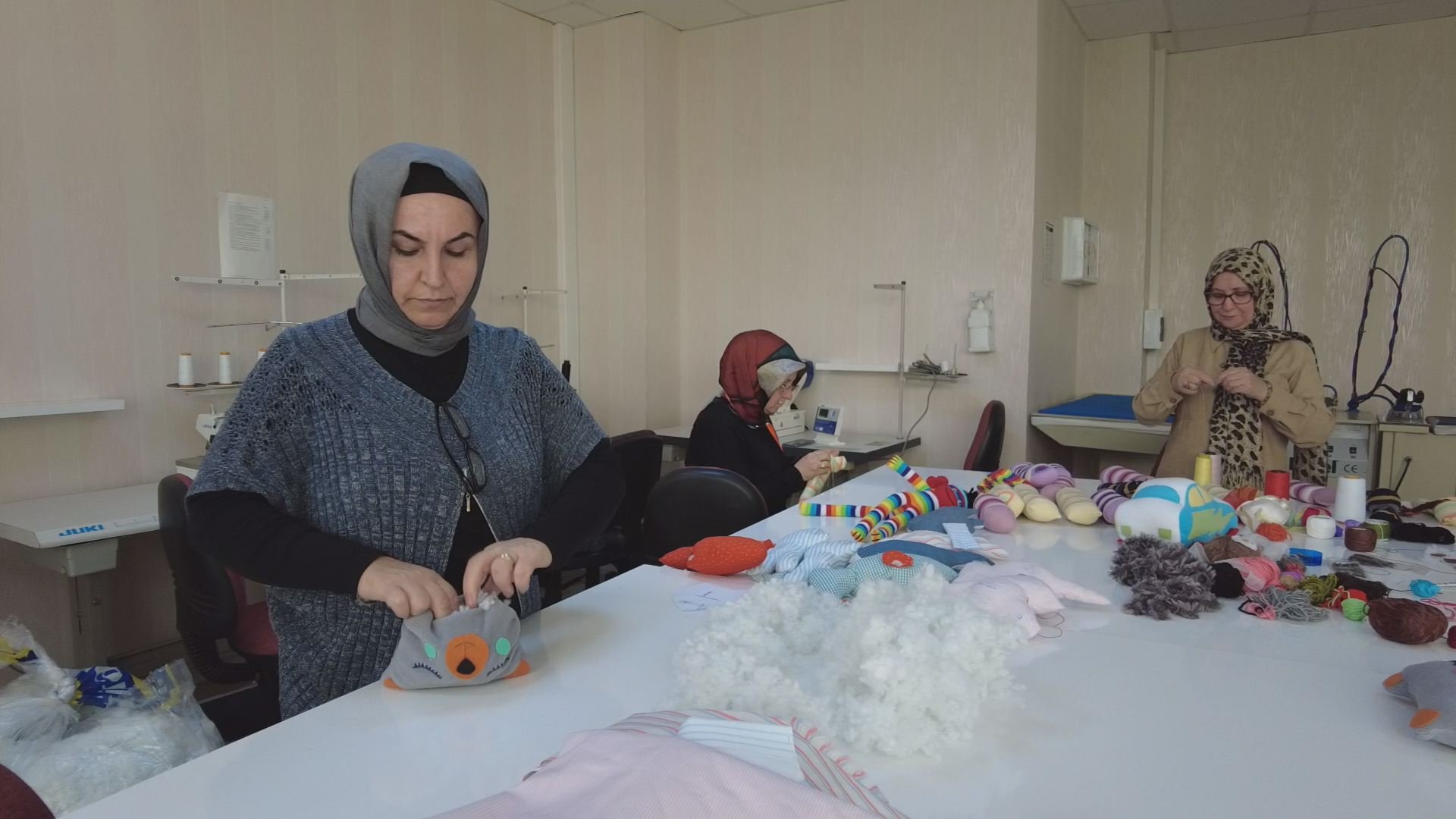 Çorum Belediyesi Buhara Kadın Kültür Merkezi’nde gönüllü kadınlar depremzede çocuklar için oyuncak yapıyor.