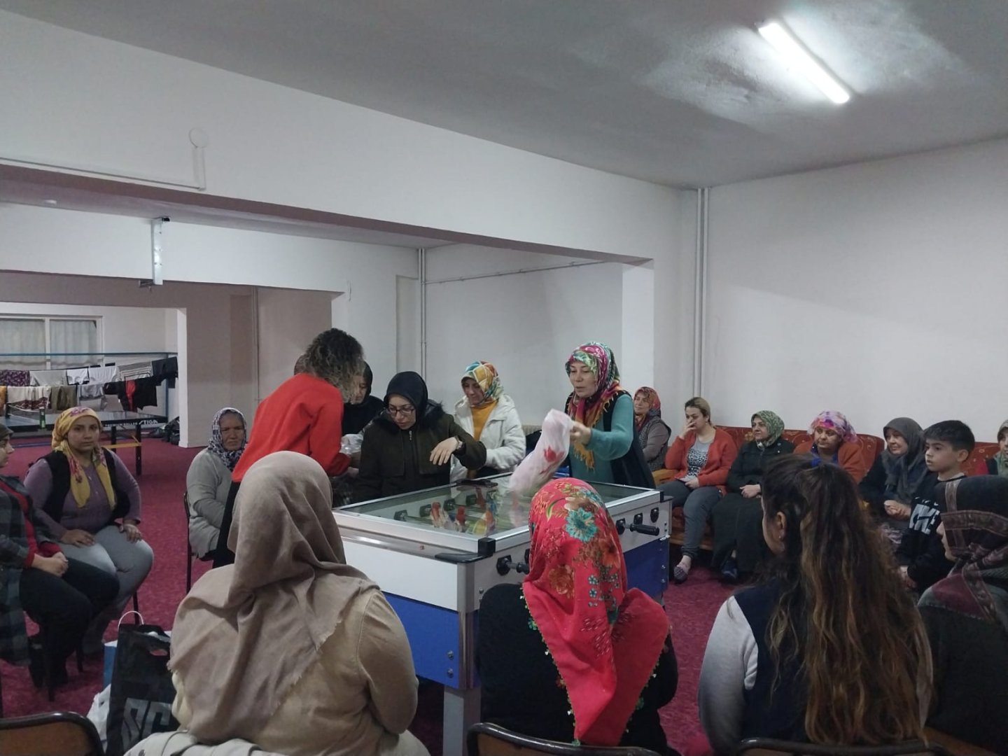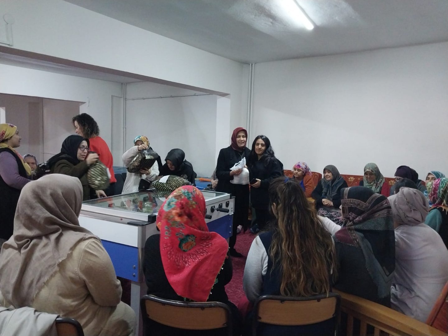 Çorum Belediyesi Kent Konseyi Kadın Meclisi, deprem bölgesinden Çorum’a gelen kadınlara el işi malzemesi hediye etti.