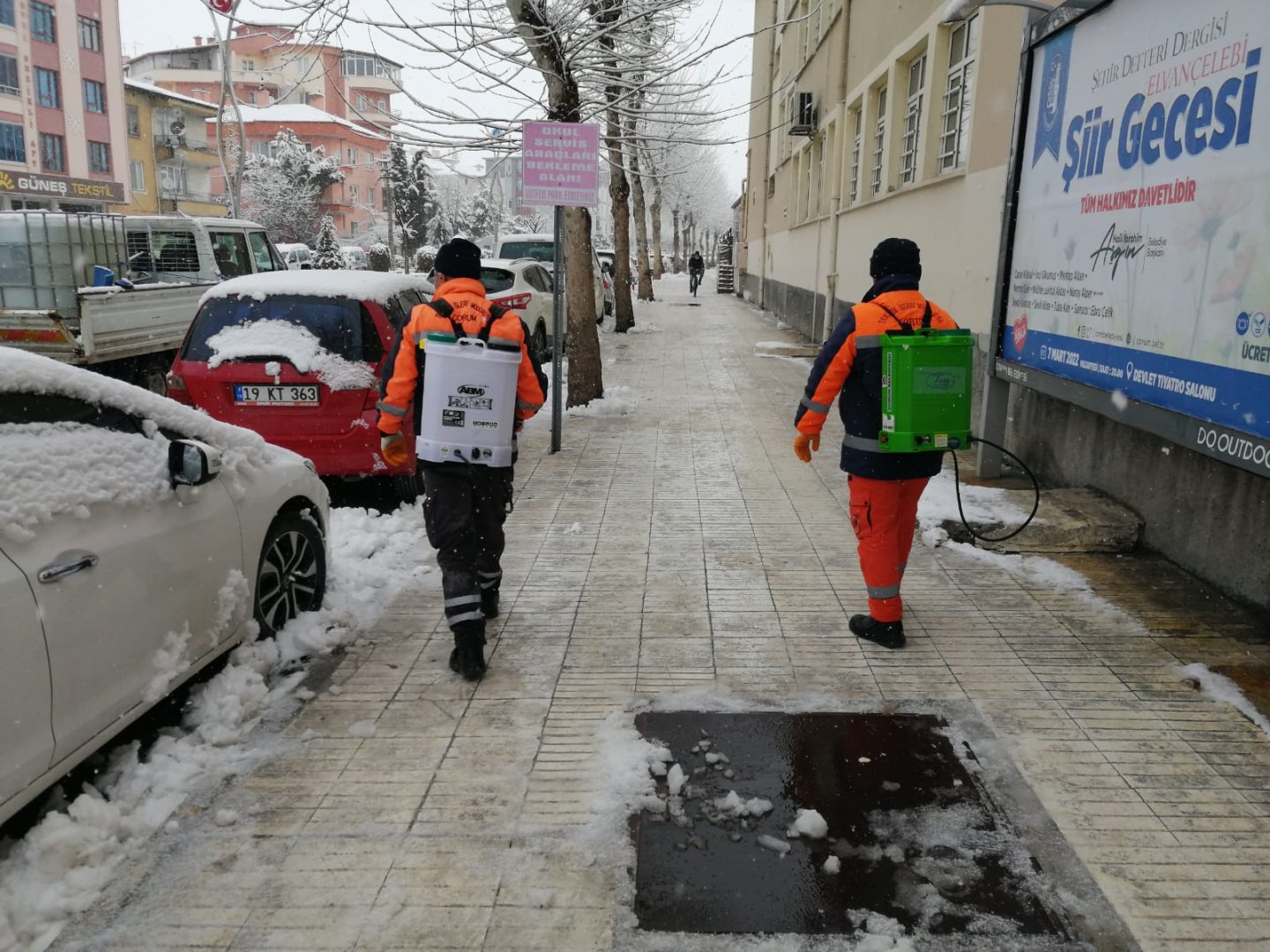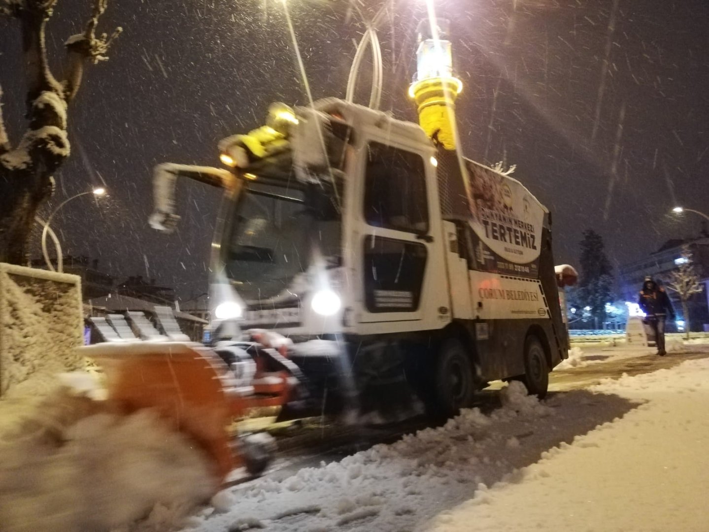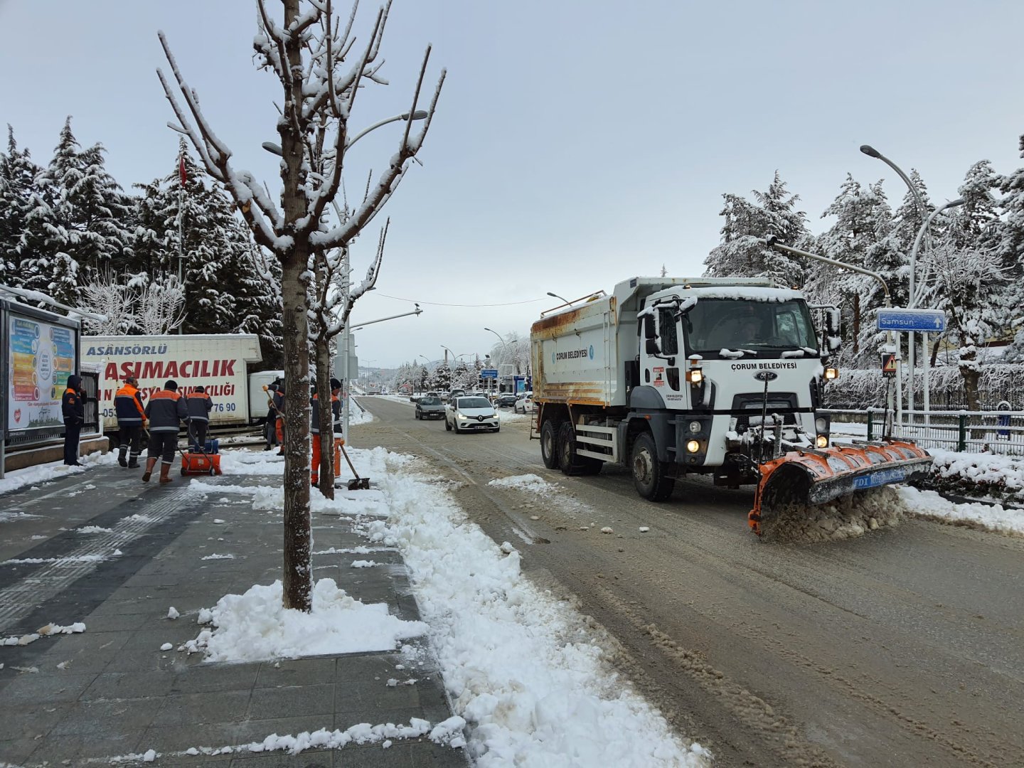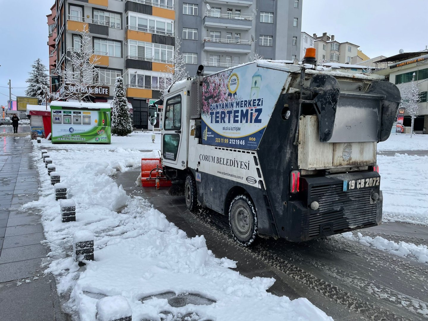 Çorum’da gece saatlerde başlayan kar yağışı ile birlikte Belediyemiz ekipleri de sahada çalışmalara başladı. Trafiğin aksamaması için şehrin tüm ana arterlerini temizleyen Belediyemiz ekipleri, ulaşımın düzenli bir şekilde sağlanması için yoğun çaba sarf etti. Kar temizliği için tüm ekiplerle sahaya çıkan Çorum Belediyesi yol ve kaldırımlardaki buzlanmaya karşı aralıksız çalıştı.
