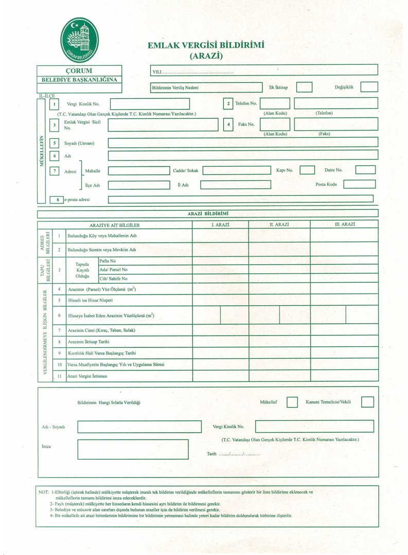 Çorum Belediyesi’nden yapılan açıklamada, “Arsa veya arazi iken üzerine bina yapılarak veya imar uygulaması neticesinde vasfı değişen gayrimenkullerin değişiklik beyanlarının da belediyeye bildirilmesi zorunludur. Ayrıca satın alınan gayrimenkullerin tapunun el değiştirdiği yıl içerisinde yine Belediye’ye Emlak Vergisi Beyannamesi ile bildirilmesi gerekmektedir. 31 Aralık 2018 Pazartesi günü mesai bitine kadar Emlak Vergisi Beyannamesi verilmesi gerekmektedir. Bu işlemleri yapmayanlar vergi cezasına ve gecikme cezalarına maruz kalmaktadır” ifadelerine yer verildi.