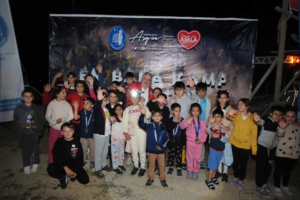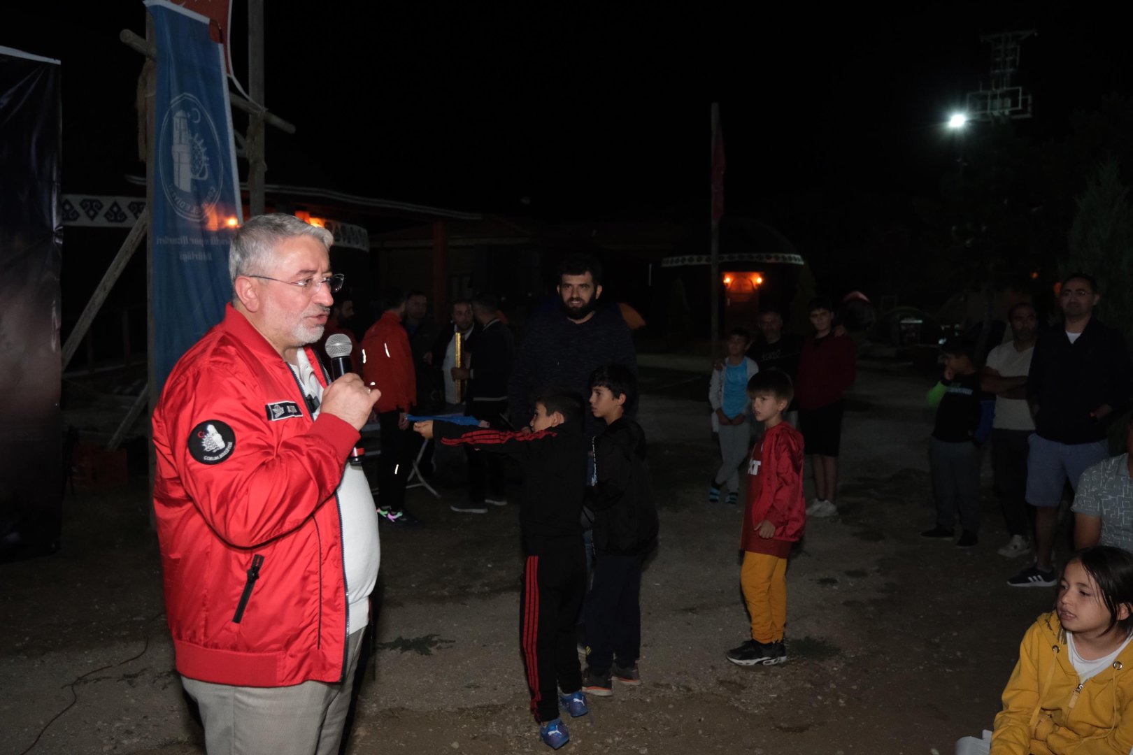 Başkan Aşgın, kamp etkinliği kapsamında düzenlenen yarışmalarda dereceye giren baba ve çocuklarına da hediyelerini takdim etti.