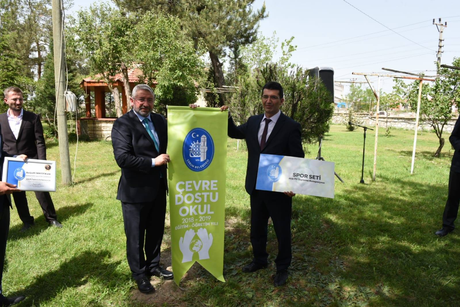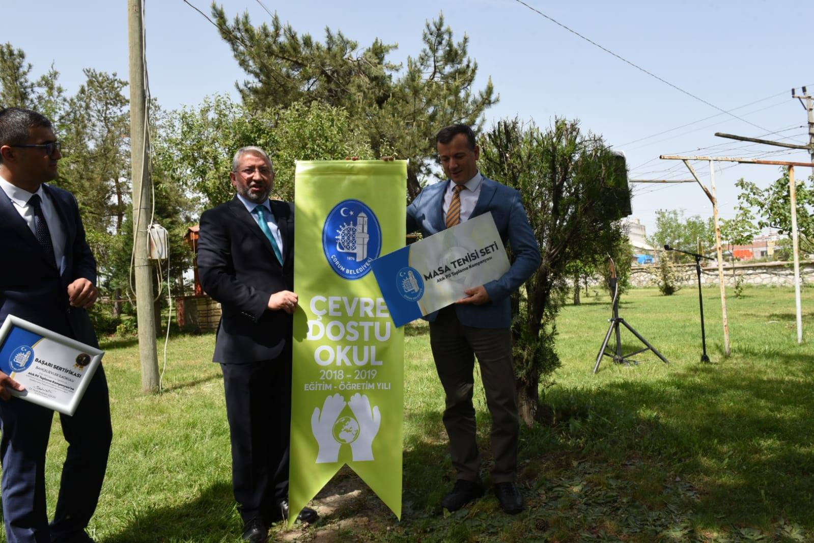Belediyemizin Temizlik İşleri Müdürlüğü bahçesinde gerçekleştirilen ödül törenine Belediye Başkanımız Dr. Halil İbrahim Aşgın, ödül alan okulların öğrencileri öğretmenleri ve yöneticileri katıldı.