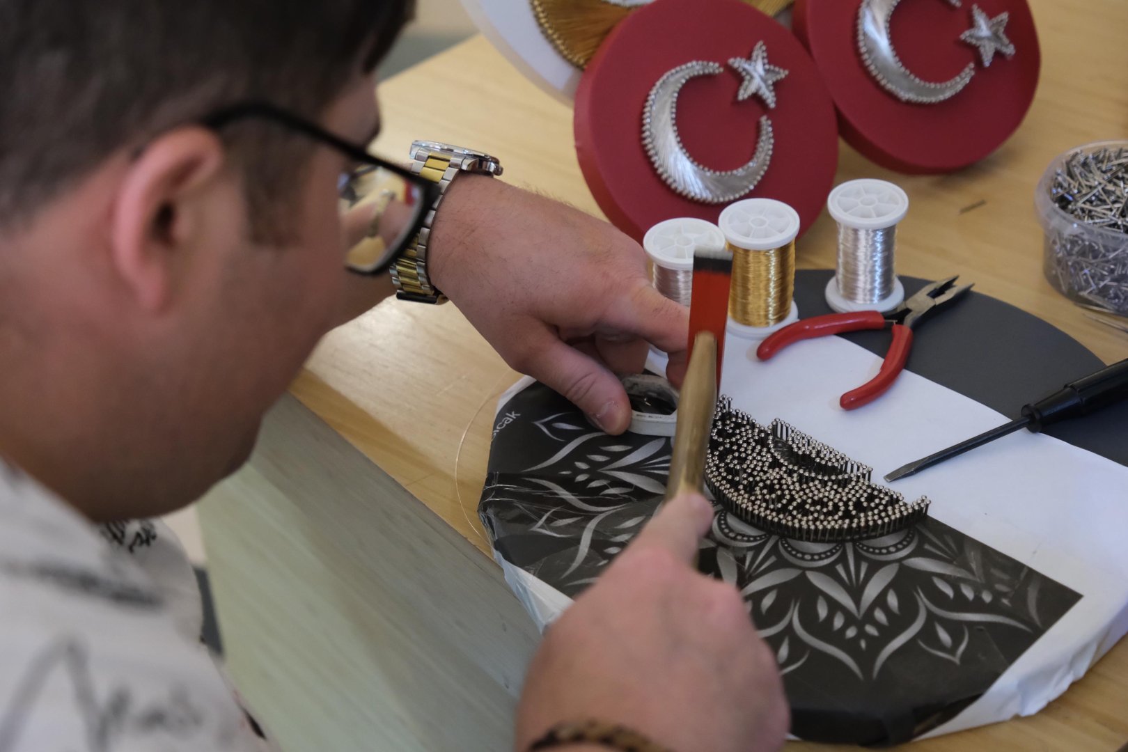 Engelli Eğitim Merkezi El Sanatları Öğretmeni Neslihan Gökşen, “Filografi sanatı, tasarlanmış bir motif ya da desenin, ahşap malzeme üzerine çiviyle çakılması ve arasından çeşitli renklerde iplik veya teller geçirilmesi ile oluşturulan bir el sanattır. Bu sergimiz tamamen öğrencilerimizin kendi tasarımları ve ürünlerinden oluşuyor. ” dedi.