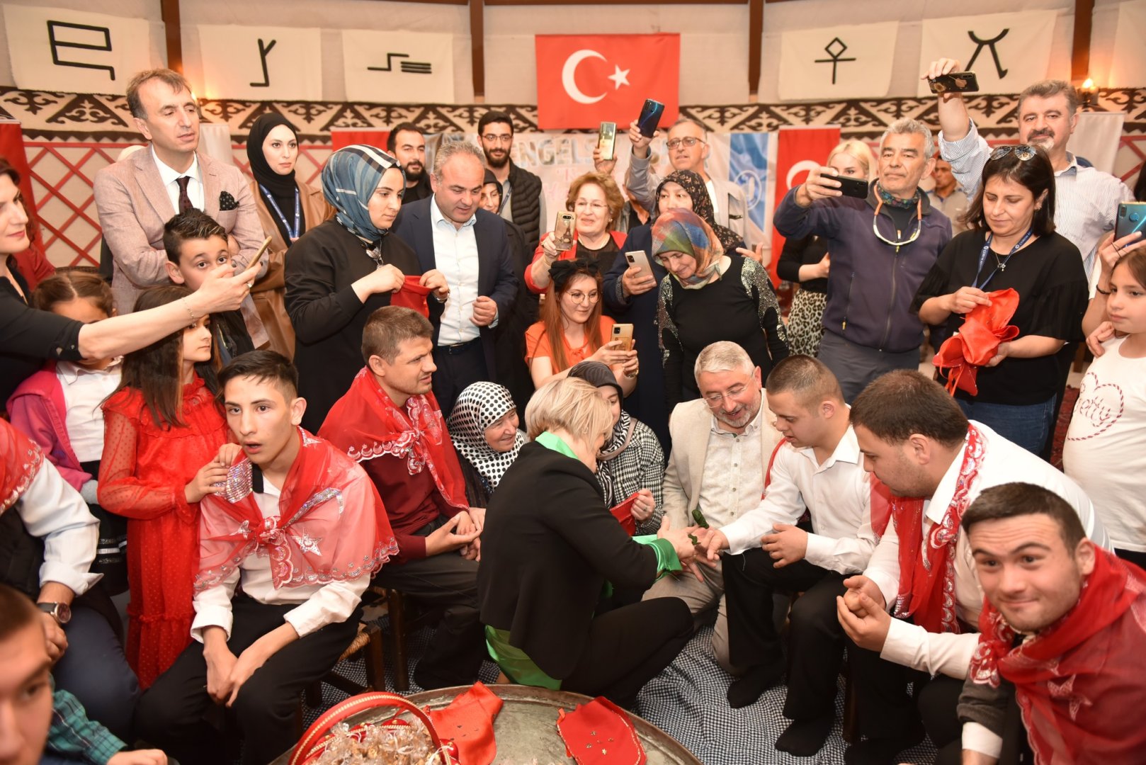 Yeryüzünde yavrusunu davulla zurnayla askere gönderen, ona kına yakan başka bir milletin olmadığının altını çizen Aşgın, “Bu yavrularımızın bu duyguyu velileriyle, aileleriyle birlikte yaşamasını istedik. Etkinliğimiz konvoyla başladı. Çorumlu Obası’nda gençlerimizle anı yaşıyoruz, eğleniyoruz. Kınalı kuzularımıza kınalarını da yakacağız. Biz bu yavrularımızı gerçekten çok seviyoruz. Engelin aslında yürekte olduğunu, sevgisizliğin büyük bir engel olduğunu, bunun dışında ayaktaki, baştaki herhangi bir uzuvdaki engelin, eksikliğin asla bir eksiklik ve engel olmadığını buradan haykırıyoruz” ifadelerini kullandı.