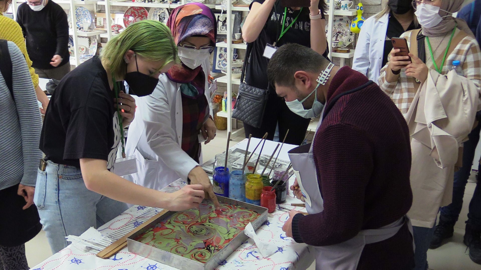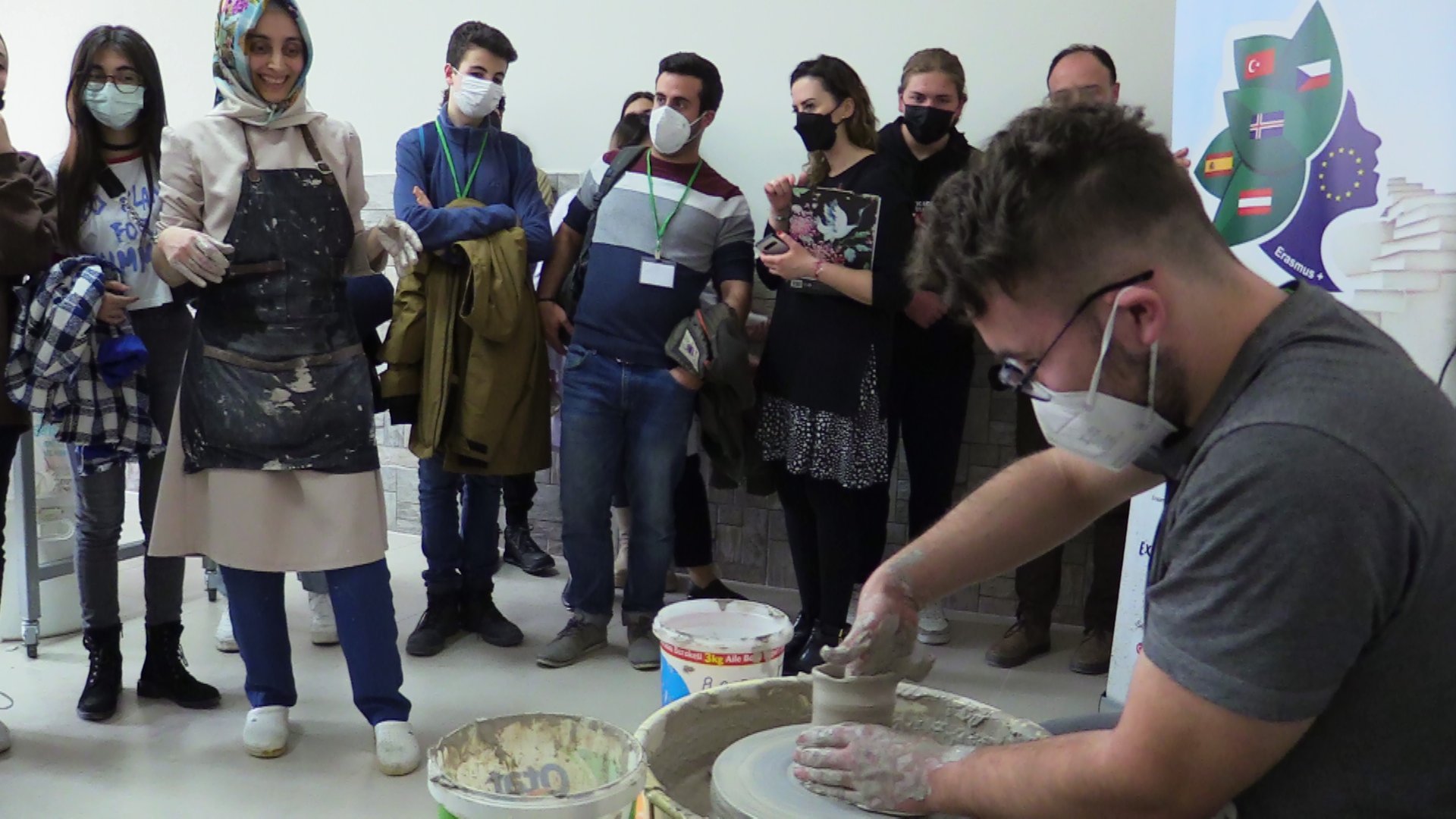 İspanya ve Çekya’dan bir Erasmus+ projesi kapsamında Çorum’a gelen öğretmen ve öğrenciler, Engelli Eğitim ve Rehabilitasyon Merkezi’nde engelli öğrencilerle çömlek ve ebru yaptı.