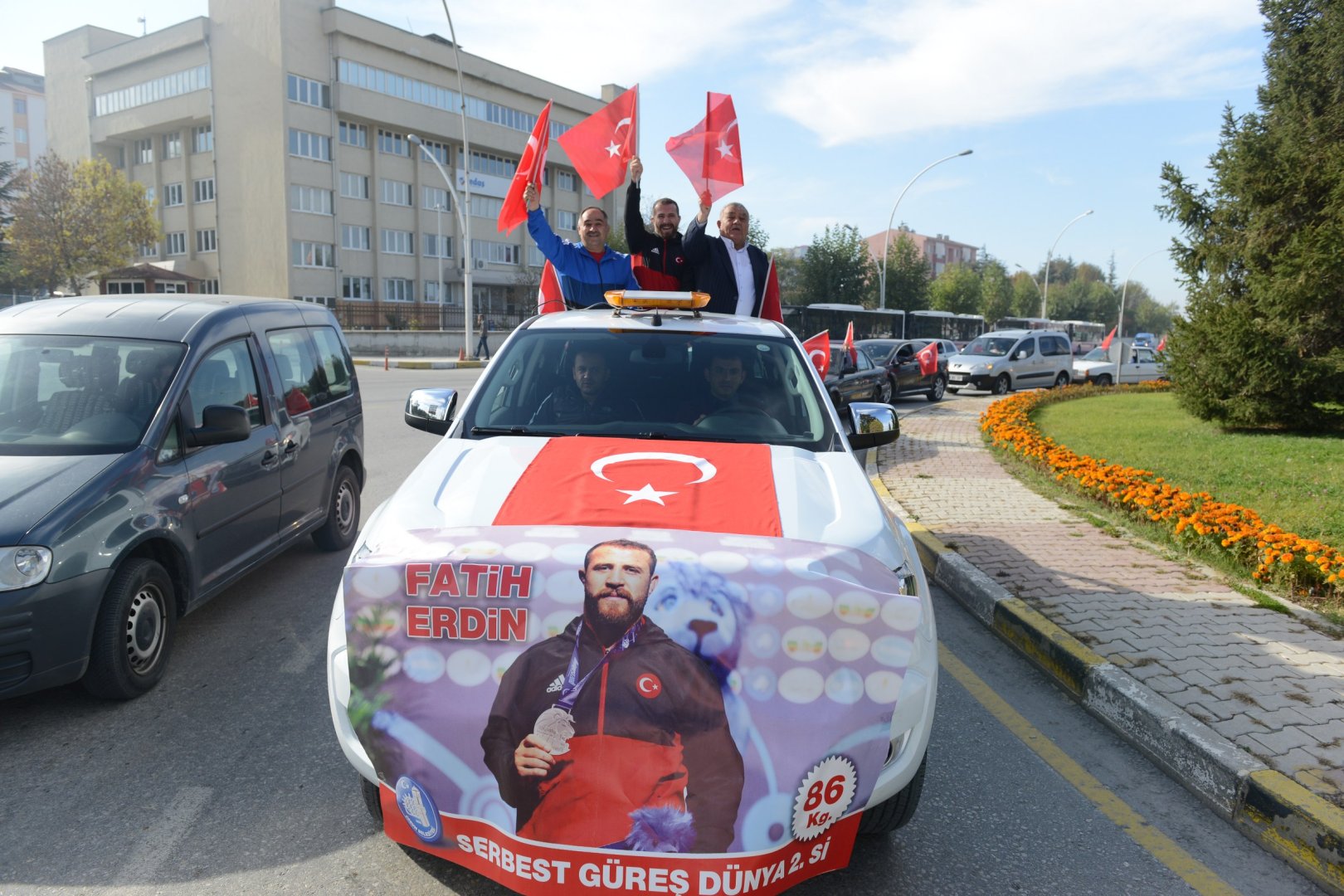 Çorum Belediyesi Dünya İkincisi olan güreşcisi Fatih Erdin’e görkemli bir karşılama töreni düzenledi ve arsa hediye etti. Macaristan’ın Budapeşte şehrinde yapılan Dünya Büyükler Serbest Güreş Şampiyonası’nda finalde yenilerek ikinci olan ve gümüş madalya kazanan Fatih Erdin dün Anitta Otel önünden başlayarak üstü açık araçla bir şehir turu attı ve ardından da Belediye önünde düzenlenen törene katıldı.