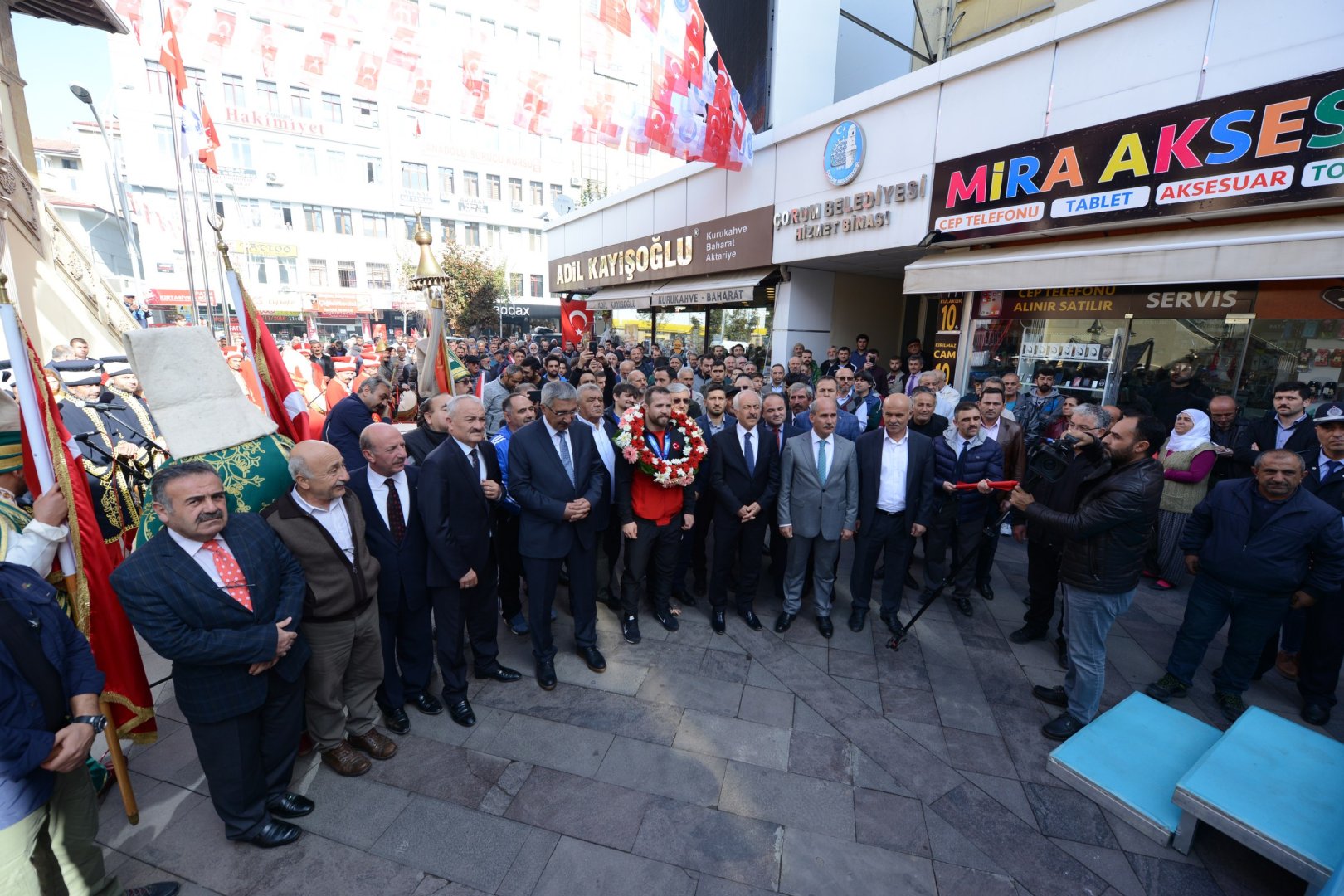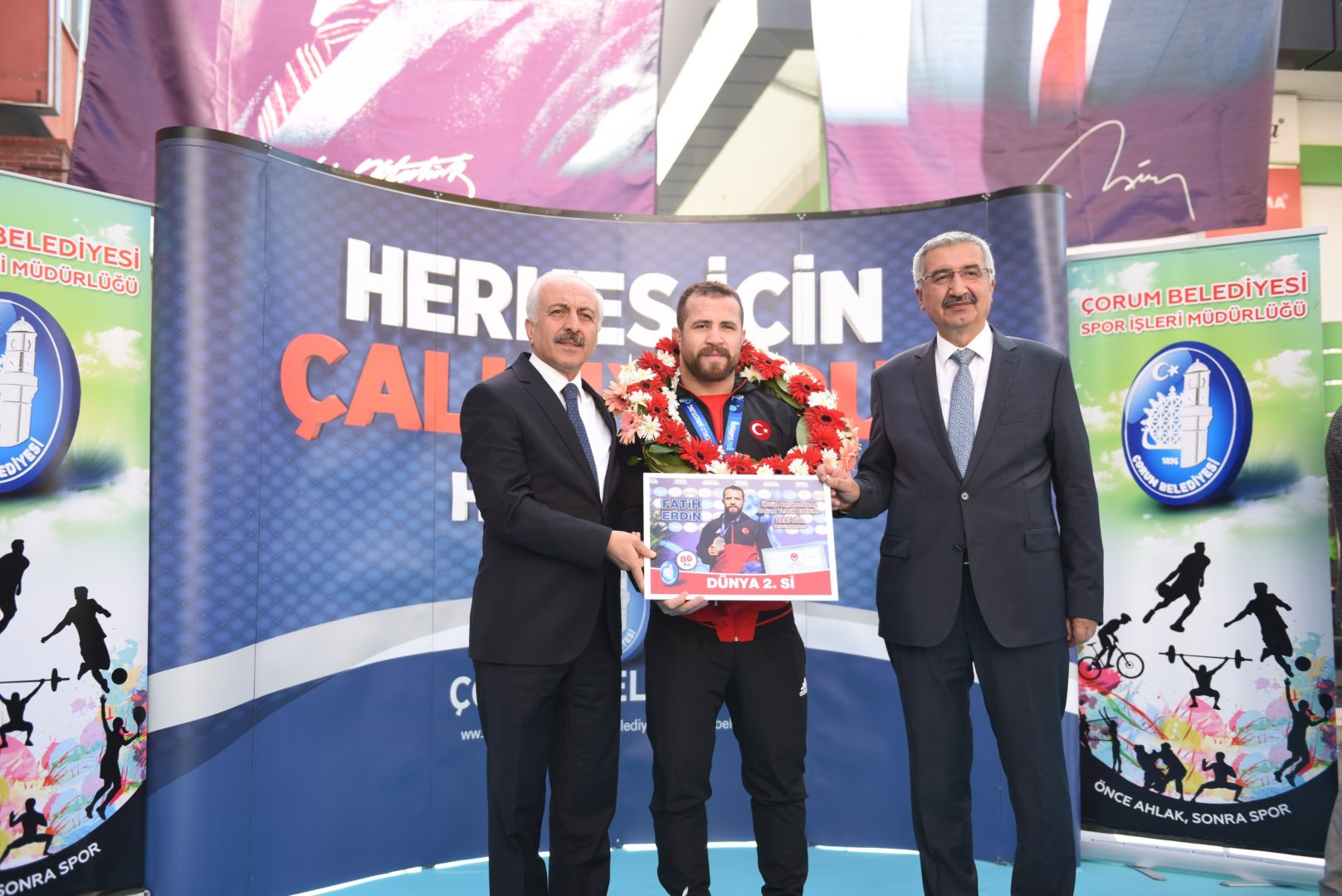 Macaristan’da yapılan Dünya Güreş Şampiyonası’nda 86 kiloda ikinci olarak gümüş madalya kazanan Çorum Belediyespor güreşçisi Fatih Erdin düzenlenen karşılama ve ödül törenine gerek protokolün gerekse vatandaşların ilgisi hayli renkli oldu.
