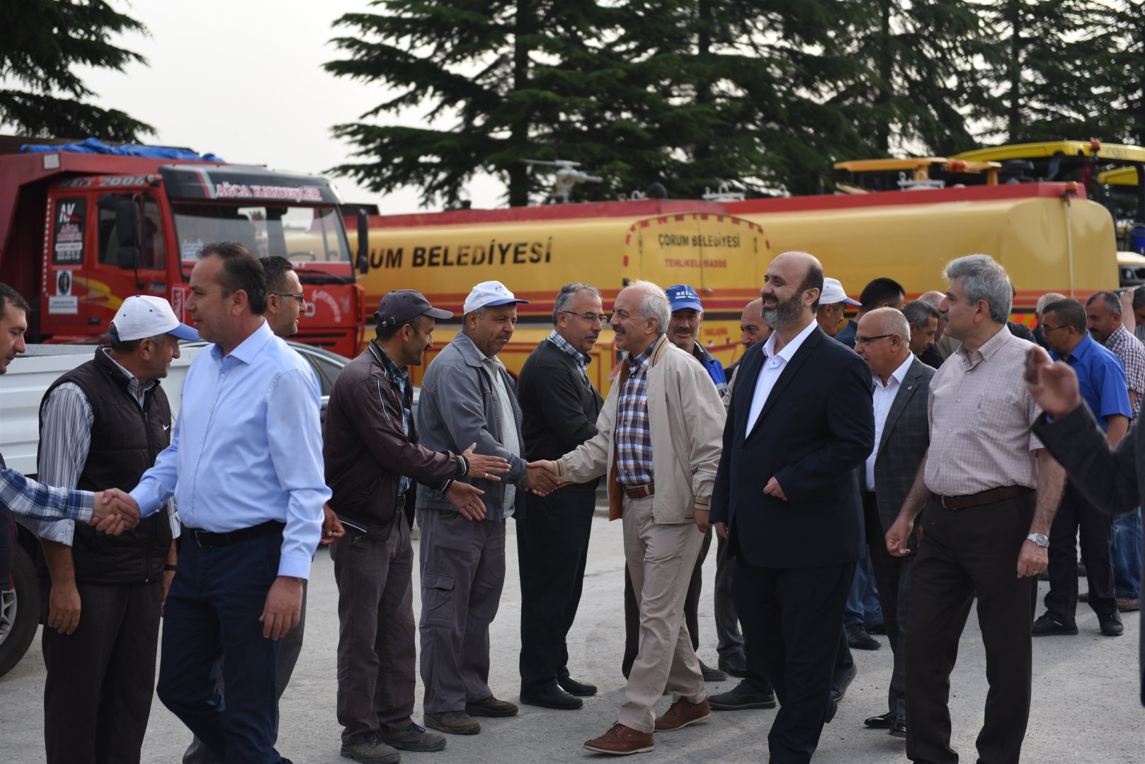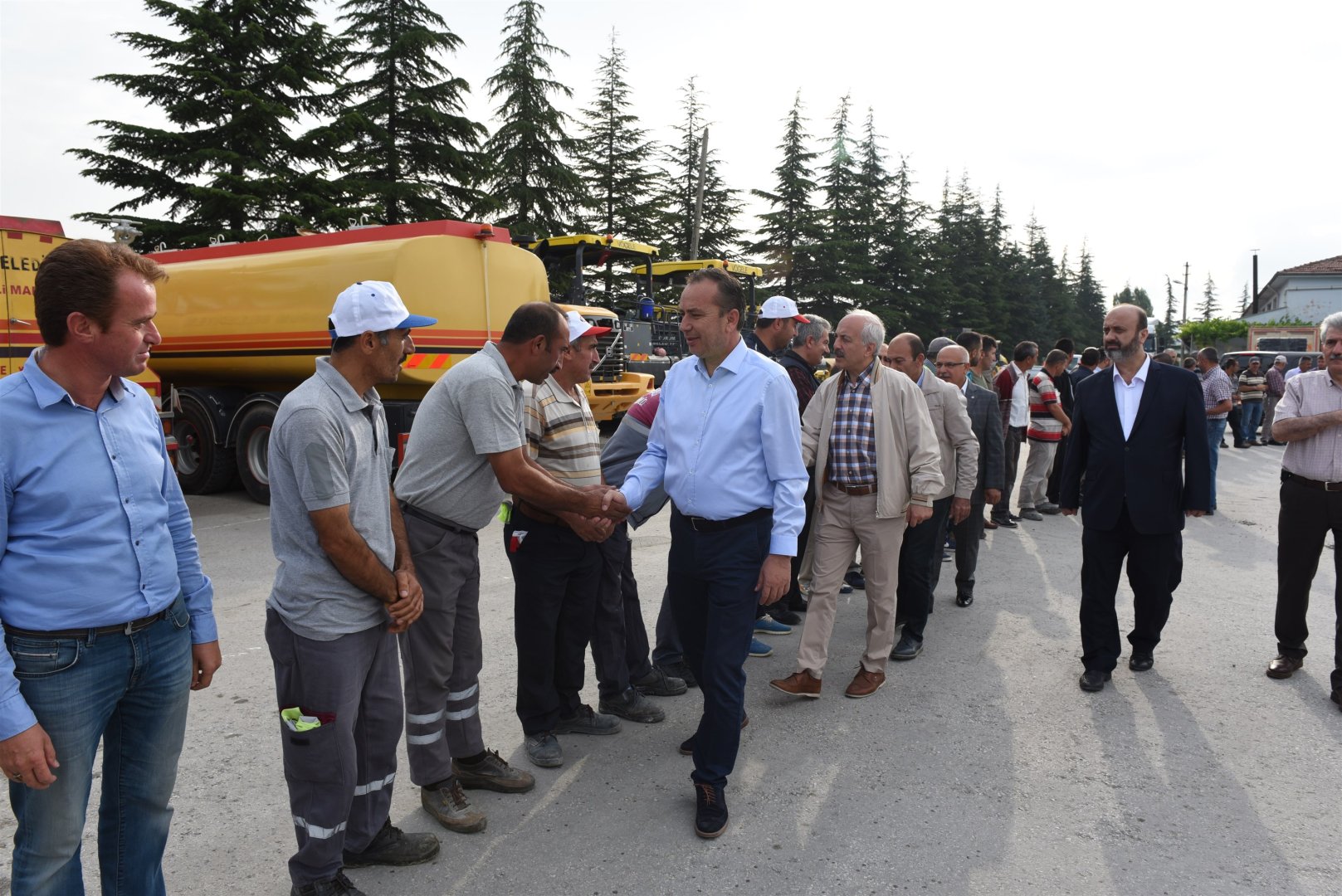 Başkan Gül ve Partililer Ramazan bayramı münasebetiyle Fen İşleri Müdürlüğüne bağlı şantiyede saha ekibiyle bayramlaştılar.