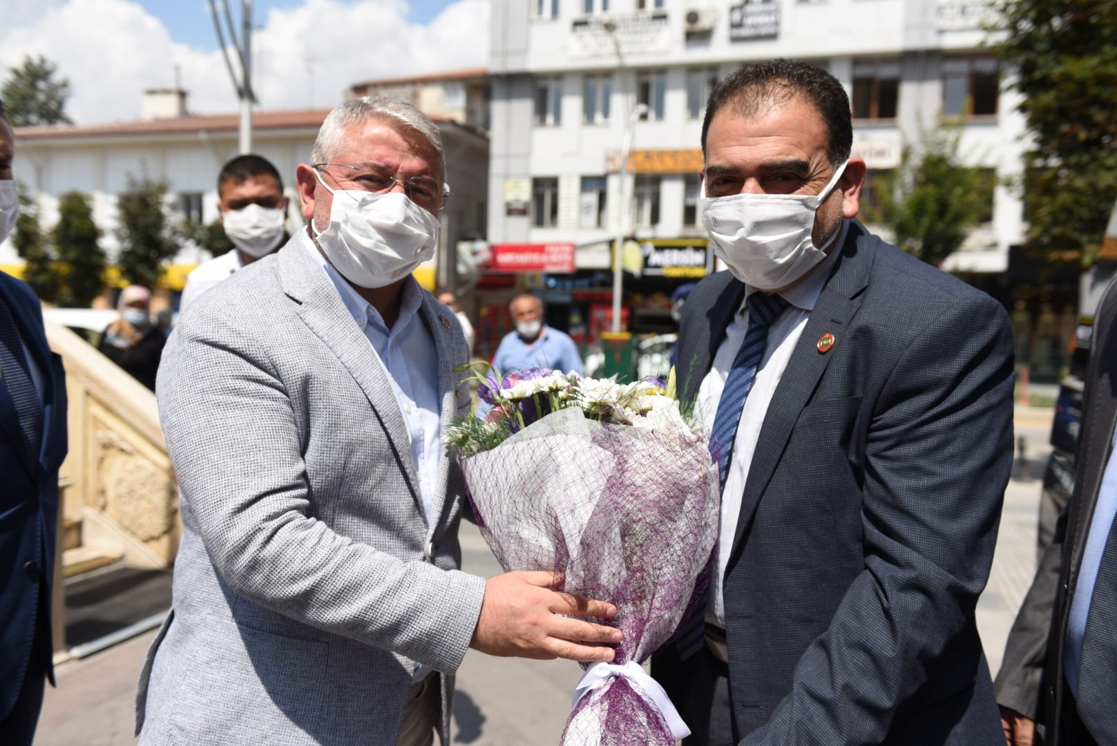 Kardeş şehir Kalkilya’dan gelen heyet ilk olarak belediyemizi ziyaret etti. Belediye Başkanımız Dr. Halil İbrahim Aşgın, Kalkilya Belediye Başkanı Dr. Haşim Elmasri, Meclis Üyesi Amid Shrem ve Devlet Temsilcisi Cemal Jubara’nın da yer aldığı heyeti Belediye Binası önünde karşıladı.