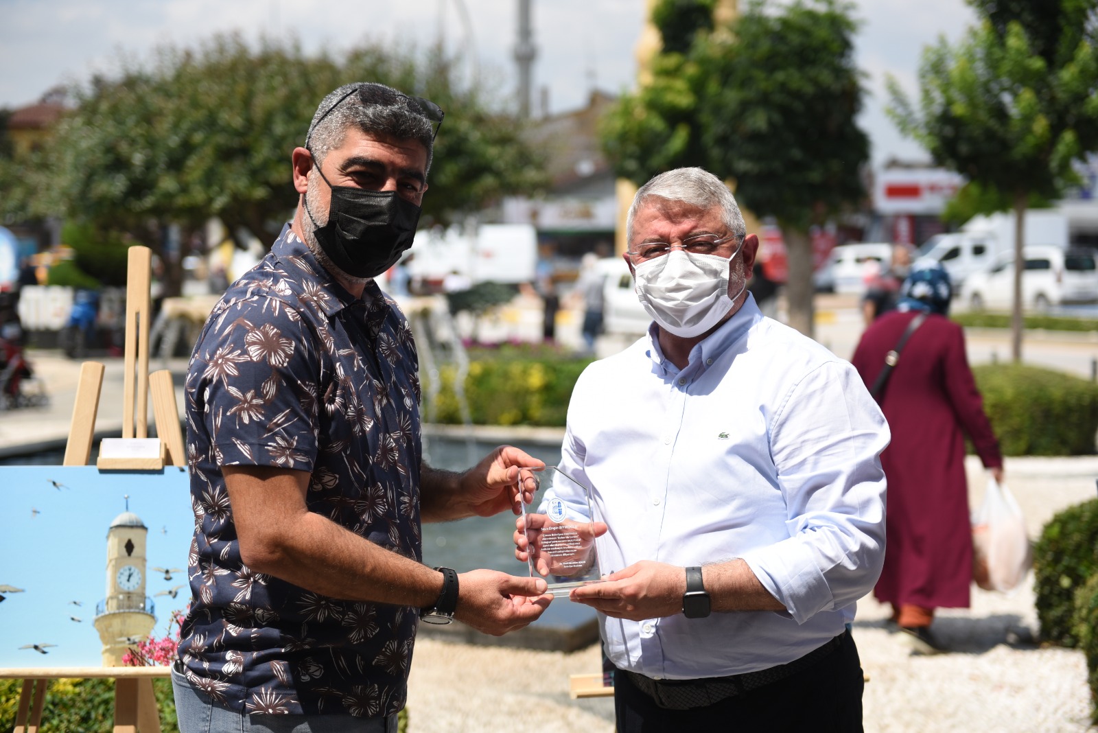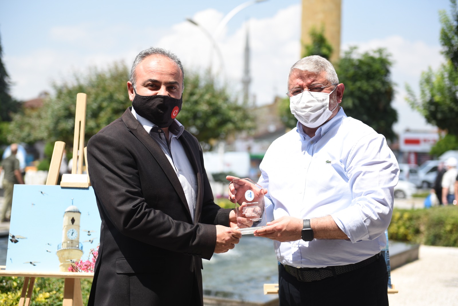 Konuşmaların ardından Belediye Başkanımız Dr. Halil İbrahim Aşgın önce seçici kurul üyelerine teşekkür plaketi, ardından dereceye giren eser sahiplerine ödüllerini takdim etti.