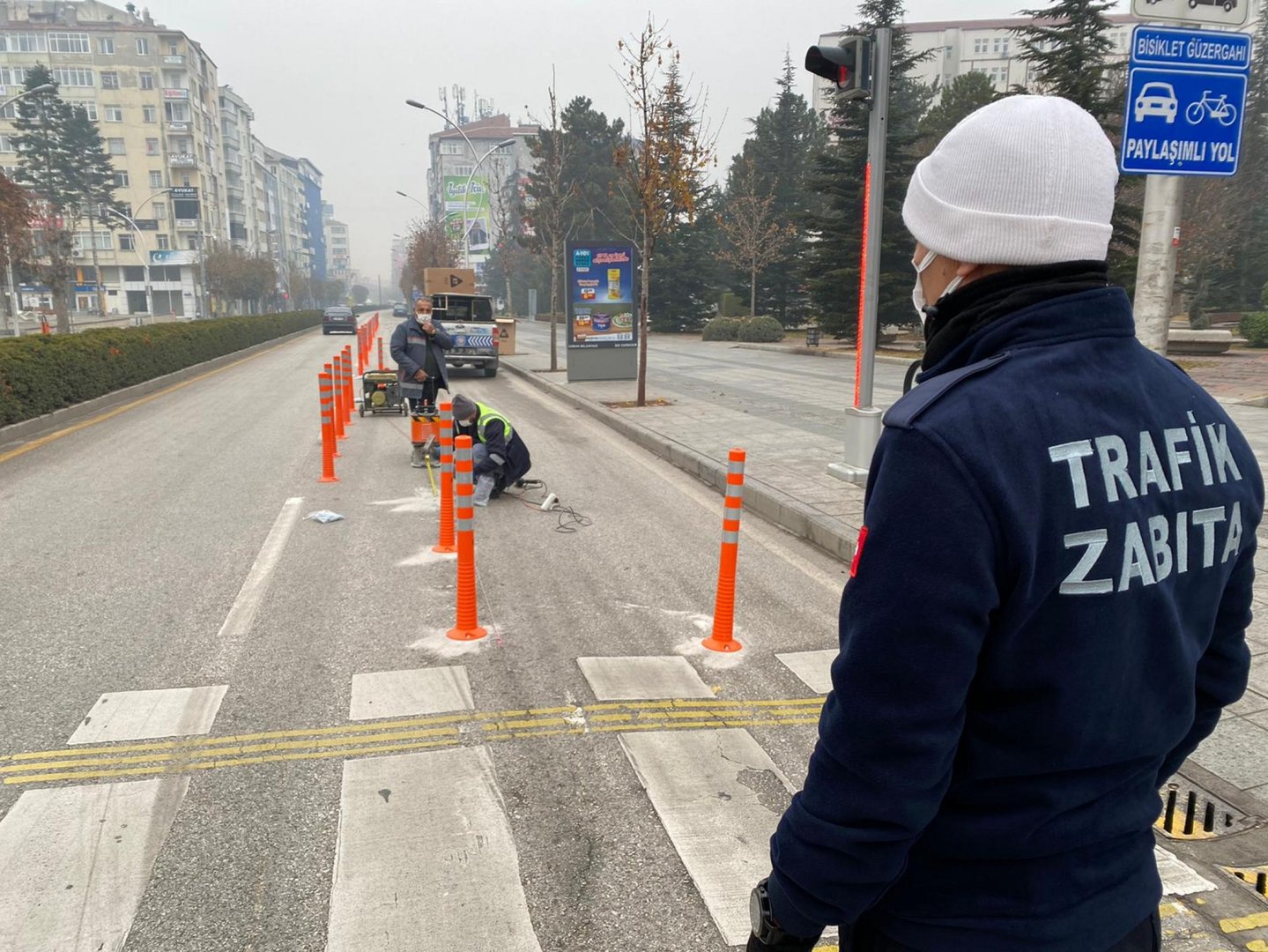 Gazi Caddesine bisiklet yolu yapıyoruz
