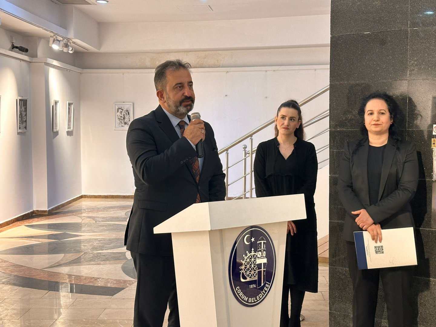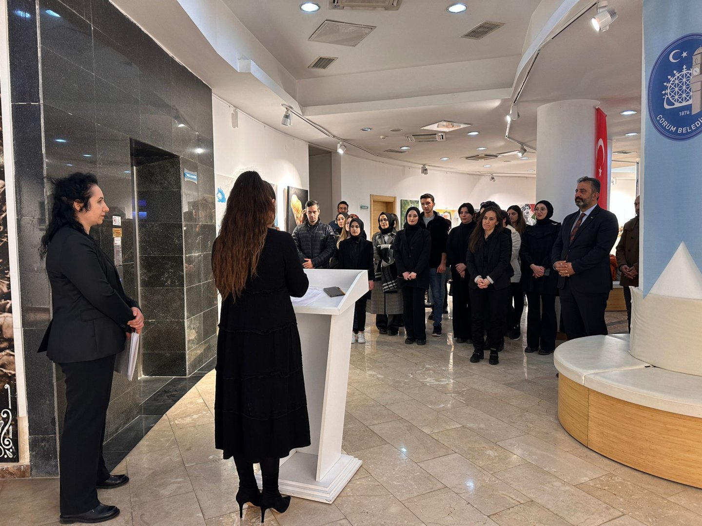 Serginin açılış törenine katılan Belediye Başkan Yardımcısı İsmail Yağbat, Filistin’de yaşan insanlık dramının bir an önce ermesi temennisinde bulundu.  Yaklaşık 5 aylık sürede 20 binin üzerinde insanın katledildiğini belirten Yağbat “Filistin ve Gazze’deki zulme karşı her kesimden karşı duruşlar olduğu gibi sanatın dilinde de başkaldırışının çizgileri var. İnsanlar kendi anlayışı ve inancına göre bu zulme karşı çıkıyor. Bugün de Hitit Üniversitesi Resim Bölümü öğrencilerimiz net ve kuvvetli bir şekilde zulme karşı duruşlarının ifadesini burada sergiliyorlar. Sessiz Çığlık ismi verilen sergide zulme karşı duruş kuvvetli bir çığlık olarak yansıtılıyor.” dedi.