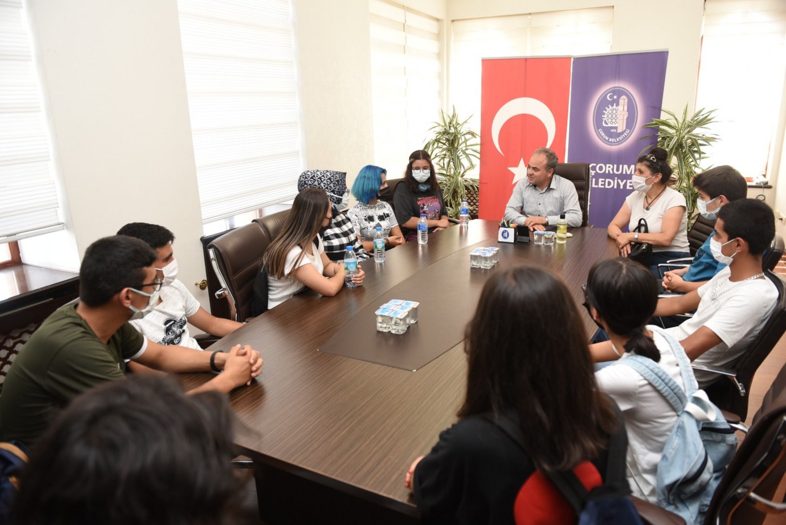 Milli Eğitim Bakanlığı tarafından işlenemeyen müfredatın telafi edilmesi noktasında okullarda yaz döneminde başlatılan “Telafide Ben de Varım” programı kapsamında çalışmalarını sürdüren Atatürk Anadolu Lisesi Felsefe Atölyesi, Felsefe Öğretmeni Nuray Cansu Uysal öncülüğünde Çorum Belediyesini ziyaret etti. Son günlerde Türkiye’nin çeşitli bölgelerinde meydana gelen yangınlar neticesinde tahrip olan bitki örtüsünün yeniden canlandırılması, o bölgelerde yeşillendirme çalışmaları için bir proje yapan genç felsefeciler, projelerini Başkan Yardımcımız Turhan Candan’la paylaştı. Felsefe atölyesi öğrencileriyle birlikte bir hazırladıkları projeyi anlatan Felsefe Öğretmeni Nuray Cansu Uysal, “Meyve çekirdeklerinin şehir merkezine konacak kumbaralara toplanması ve bu çekirdeklerle tahrip olan doğanın yeniden yeşillenmesi ile ilgili bir proje yaptık. Bu projeye belediyemiz ve sivil toplum kuruluşlarımızın katkı sağlamasını, destek olmasını talep ediyoruz” dedi.