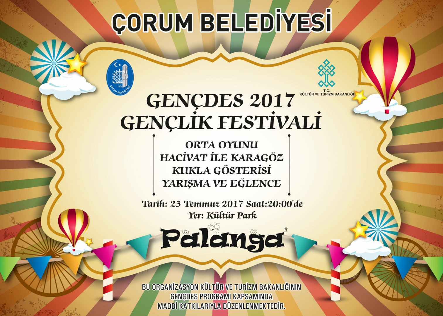 Gençlik ve Spor Bakanlığı tarafından düzenlenen GENÇDES 2017 Gençlik Festivali, belediyemizin katkılarıyla Çorum’a geliyor.