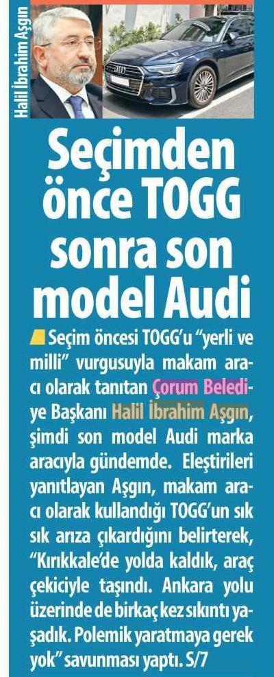 ARAÇ TOGG DEĞİL, 2014 MODEL AUDİ’DİR”