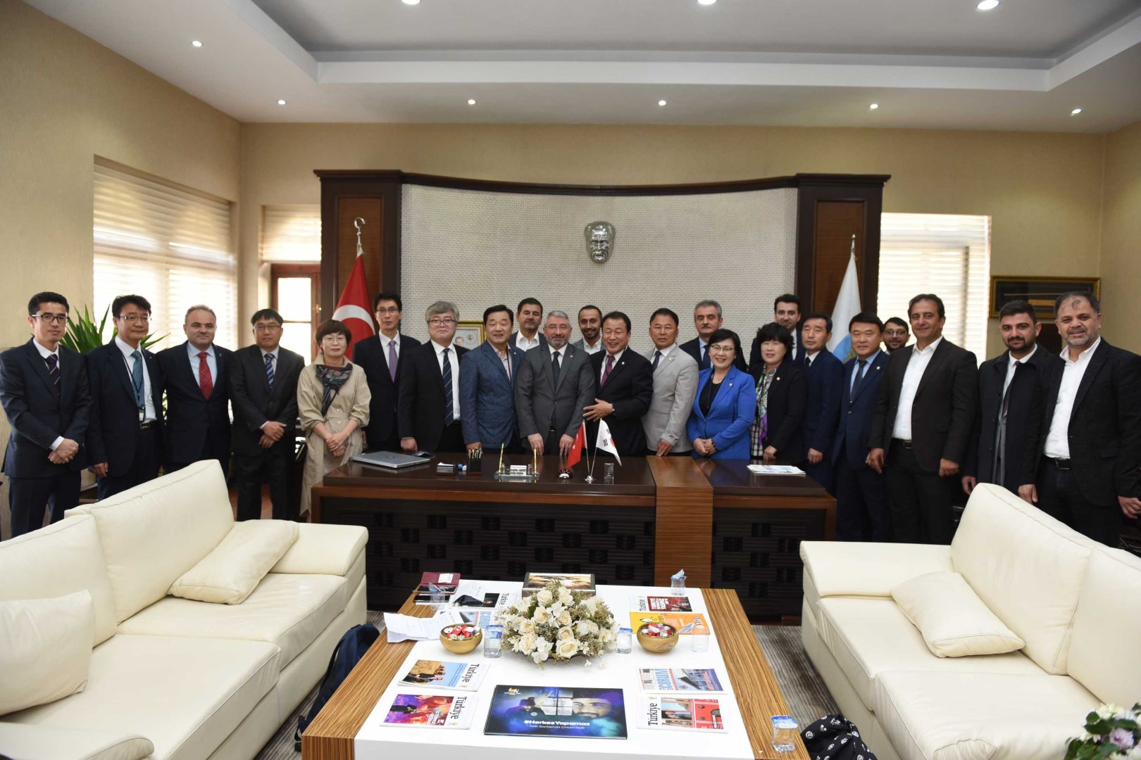 2017 yılında imzalanan protokolle kardeş şehir ilan edilen Güney Kore’nin Gimhae şehrinden gelen heyet Belediye Başkanı Dr. Halil İbrahim Aşgın’ı makamında ziyaret etti.