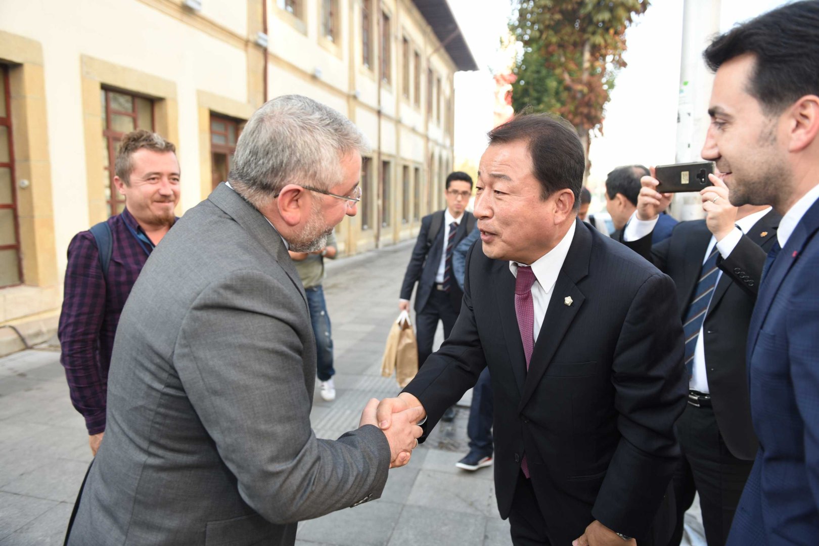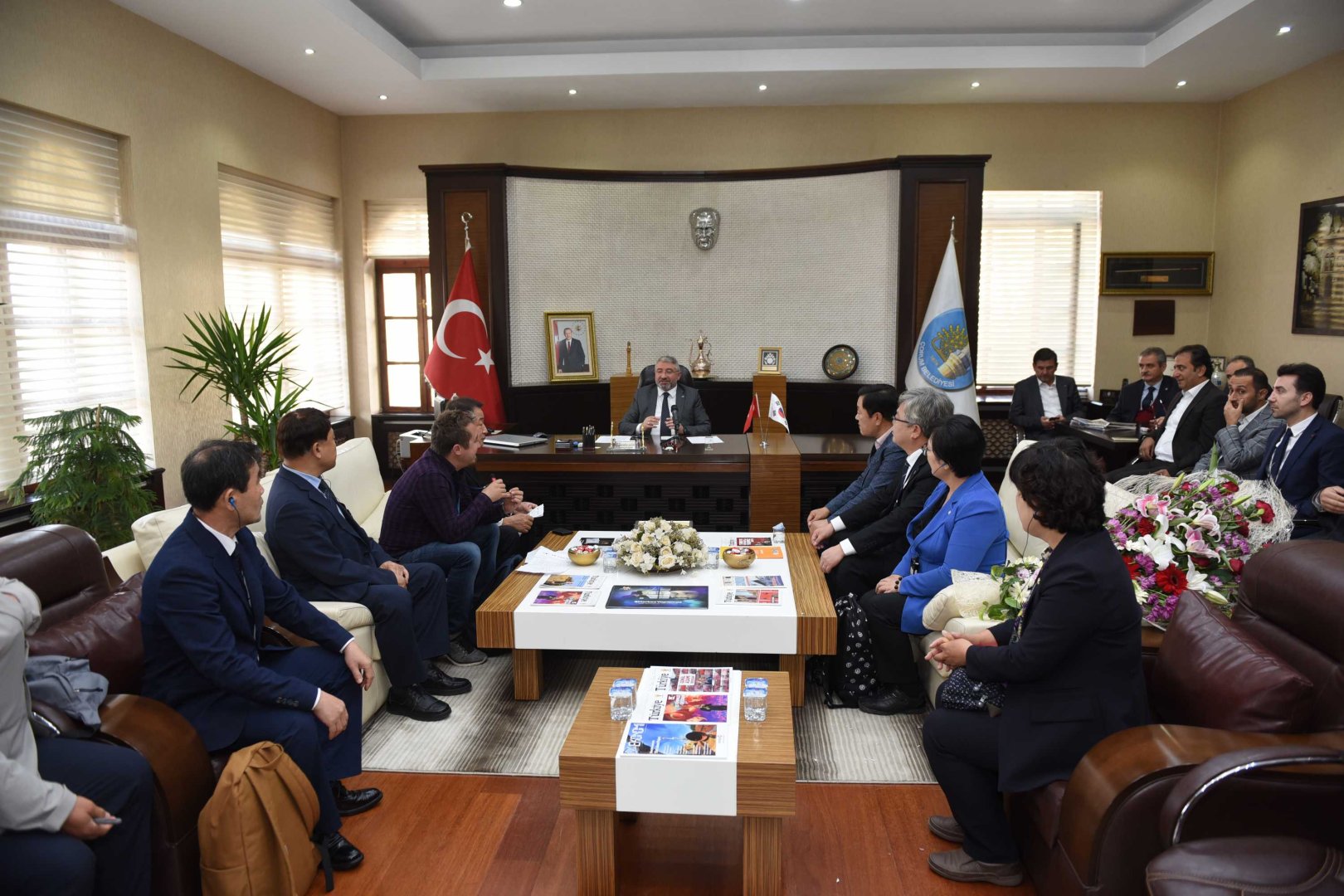 Bir takım görüşmekler ve kardeş şehir protokolü imzalamak üzere Çorum’a gelen Gimhae heyeti ilk olarak Belediye Başkanı Dr. Halil İbrahim Aşgın’ı makamında ziyaret etti. Belediye binası önünde mehteran takımıyla karşılanan heyette Gimhae Meclis Başkanı Kim Hyong-su, meclis Başkan yardımcısı Lee Jeong-hwa, Meclis Sekreteri Ha Sung-ja ve komite üyeleri yer aldı.