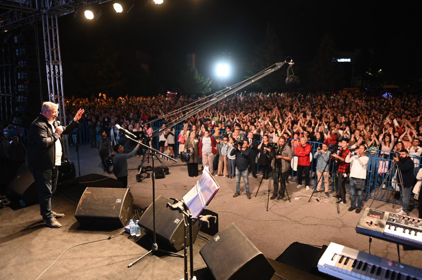 Belediyemiz tarafından fuar alanında düzenlenen konsere Çorumluların ilgisi yoğun oldu. Ayna Grubunun solisti Erhan Güleryüz’ün sevilen şarkılarını seslendirdiği konserde Çorumlular, zaman zaman Güleryüz’ün söylediği şarkılara eşlik etti. “Ölünce Sevemezsem Seni, Ceylan, Gelincik” gibi sevilen şarkılarını alandaki tüm seyircilerin oluşturduğu koro ile birlikte seslendiren Ayna Grubu müzikseverlere unutulmaz bir gece yaşattı.
