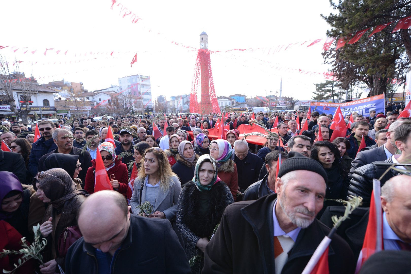 Belediye Başkanı Zeki Gül konuşmasında “Öyle bir iman öyle bir ihlas ki, secde eder cümle, canlı ve bitki, bir şubat akşamı Allah şahit ki, şaha kalkmış vatan idi Mehmed’im…” diye başlayarak “Milli güvenliğimizi, birliğimizi, toprak bütünlüğümüzü tehdit eden terör örgütlerine karşı Zeytin Dalı Harekâtı’nın 21. günündeyiz. Böyle mübarek bir günde Zeytin Dalı Harekâtı’na destek için yapılan bu mitingde emeği geçen tüm kardeşlerimize teşekkür ediyorum.” dedi.