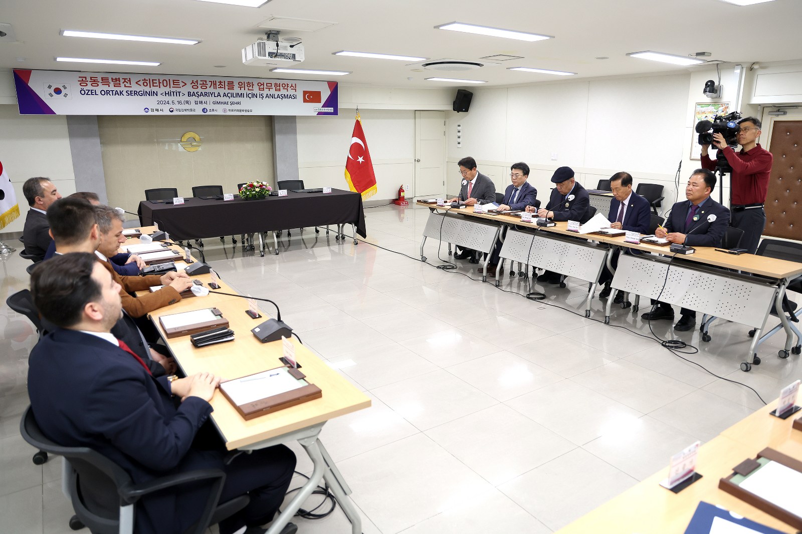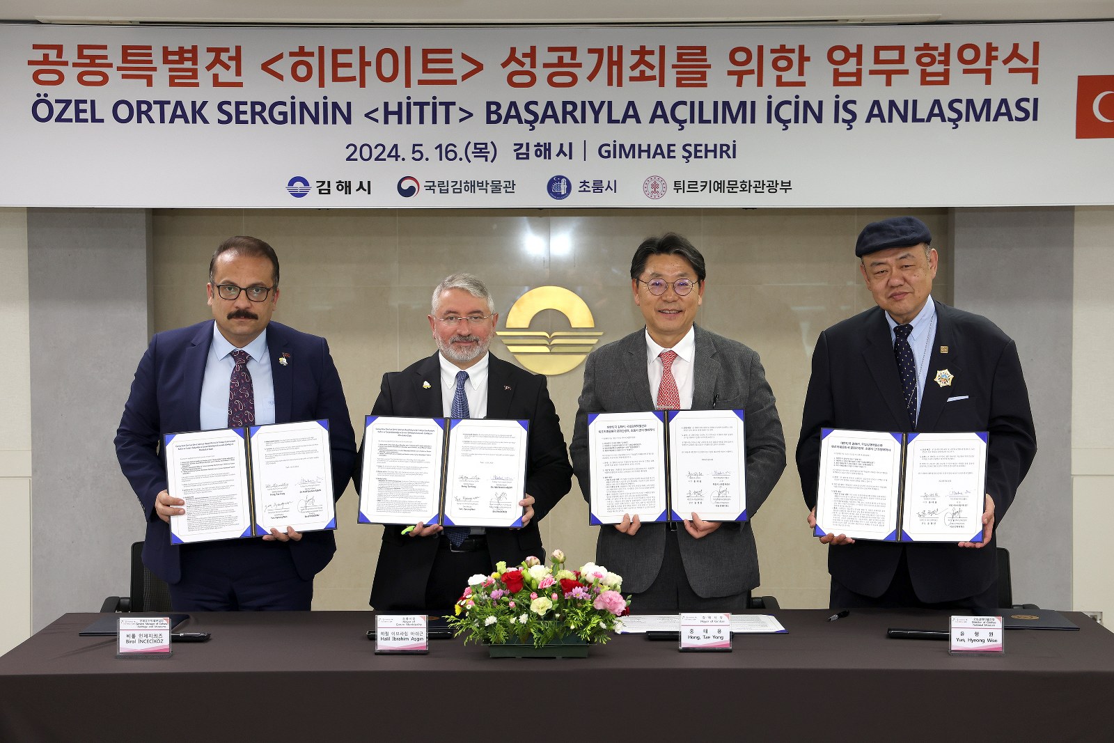 Çorum Belediye Başkanı Dr.Halil İbrahim Aşgın, Hitit Üniversitesi Rektörü Prof.Dr. Ali Osman Öztürk, Çorum Belediye Başkan Yardımcıları Zübeyir Tuncel, Fatih Özüyağlı, Çorum Belediyesi Strateji Geliştirme Müdürü Talat Tekin,  07 Ekim 2024 – 02 Şubat 2025 tarihleri arasında Gimhae Ulusal Müzesi’nde 229 adet Hitit eseriyle açılacak Hitit Özel Sergisi protokol anlaşması ve bir dizi resmi ziyaret için Güney Kore’ye gitti.  Çorum heyetine Kültür ve Turizm Bakanlığı Kültür Varlıkları ve Müzeler Genel Müdürü Birol İnceciköz de eşlik etti.