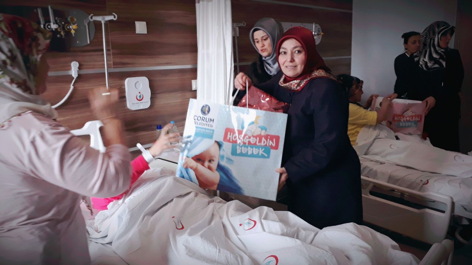 Belediye Başkanı Zeki Gül’ün eşi Halime Gül ve beraberindekiler hem annelerle hem de dünyaya gözlerini yeni açan bebeklerle yakından ilgilendi. Hoş geldin Bebek projesinin 2013 yılında hayata geçirildiğini belirten Halime Gül, Hitit Üniversitesi Erol Olçok Eğitim ve Araştırma Hastanesi Yeni Doğan servisiniziyaret ederek, ailelere çeşitli hediyeler verdik. “Hoş Geldin  Bebek” projesi ile yaptığımız ziyaretlerde ailelerin sevinçlerine ortak oluyoruz.Bütün ailelerimizi ziyaret ediyoruz. Aynı zamanda ihtiyaç sahibi bebeklerin ve annelerin ihtiyaçlarını tespit ederek onlara gerekli yardımlarda bulunuyoruz” dedi.