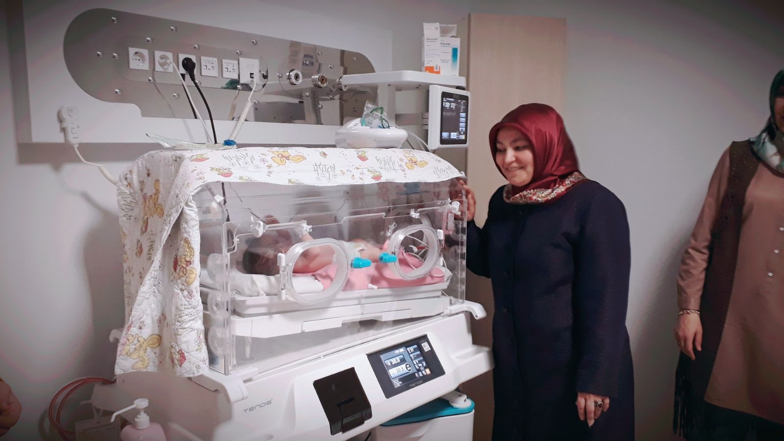 Çorum Belediyesi tarafından uygulamaya konulan “Hoş geldin Bebek” projesi kapsamında Belediye Başkanı Zeki Gül’ün eşi Halime Gül, Belediye Başkan Yardımcısı Ahmet Yabacıoğlu’nun eşi Sıdıka Yabacıoğlu, Belediye Başkan Yardımcısı Turhan Candan’ın eşi Havva Candan, Belediye Meclis Üyesi Fatma geniş ve Nahide Tekin Hitit Üniversitesi Erol Olçok Eğitim ve Araştırma Hastanesi Yenidoğan servisini ziyaret etti.