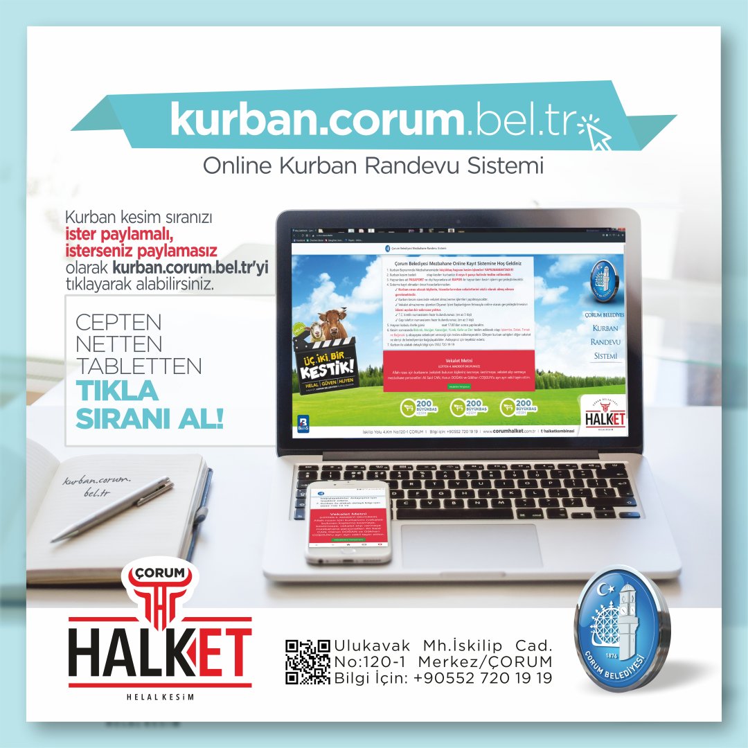 Çorum Belediyesi, üç yıldır hizmete sunduğu mezbaha randevu sistemini bu yıl da aktif hale getirdi. Buna göre büyükbaş kurbanı olan vatandaşlar http://kurban.corum.bel.tr adresine girerek sisteme kayıt olup hangi gün ve hangi saatte kurbanını kestireceğini belirleyebilecek.